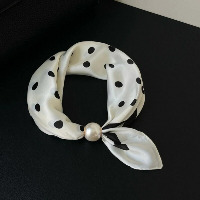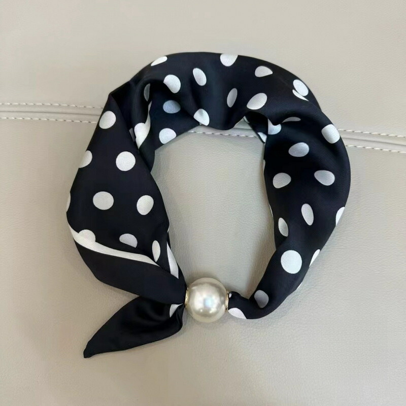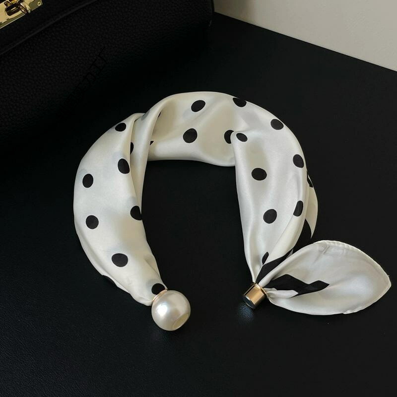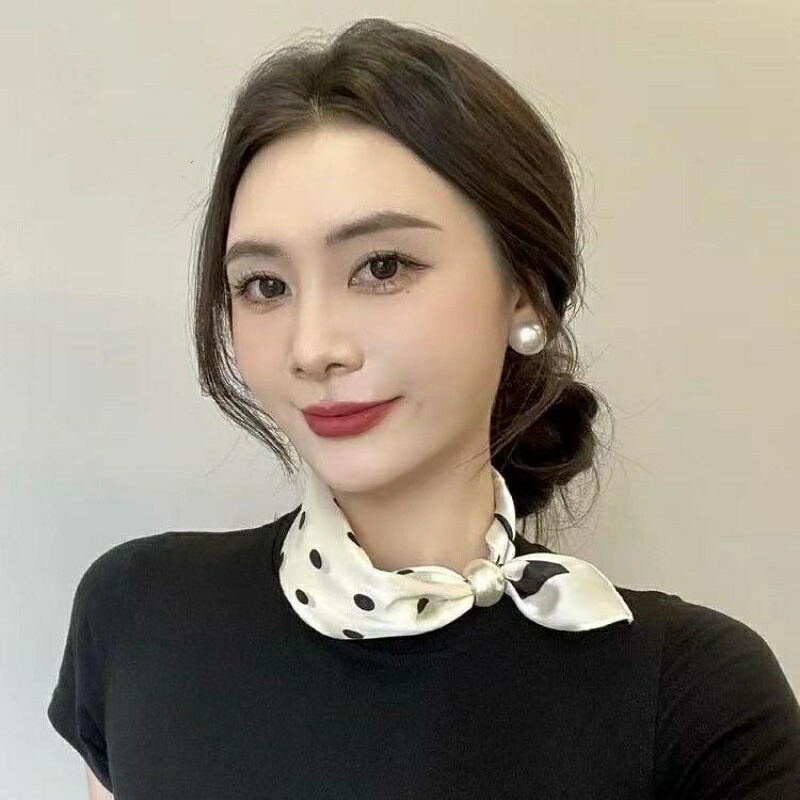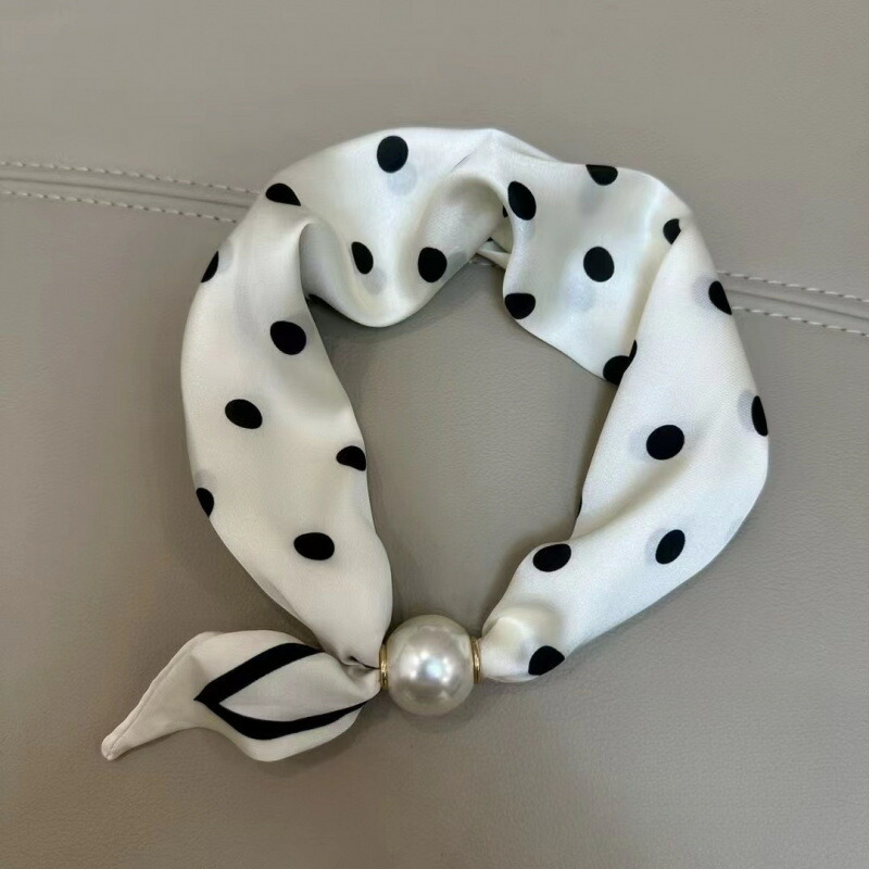 春から夏にかけてぴったりなフレンチ風ポイント柄の薄手スカーフネックレス! -シルク風スカーフネックレスは、女性のための新しいアイテムです !