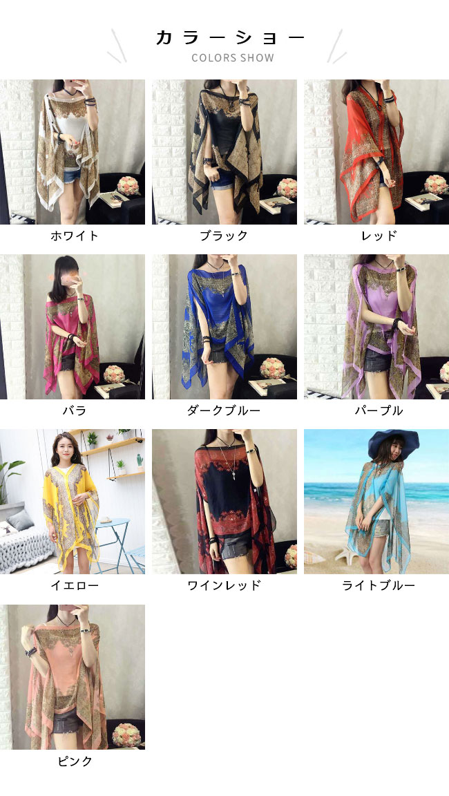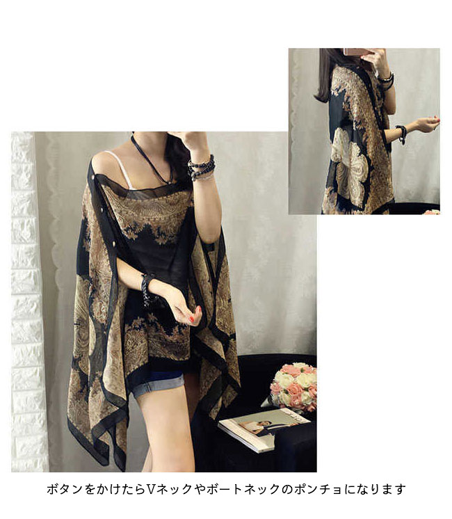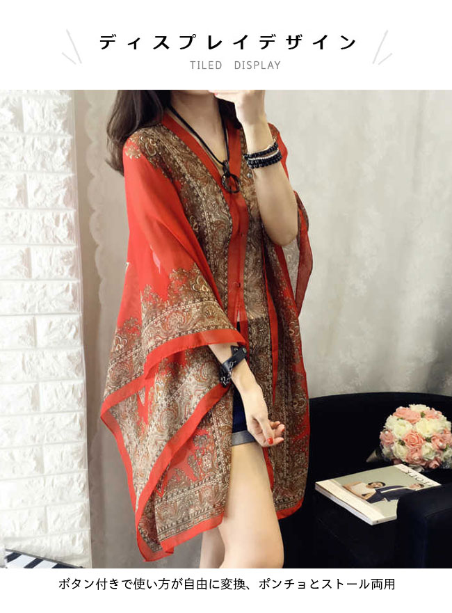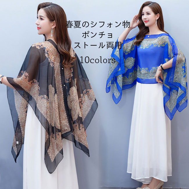 ストール 大判 シフォン ポンチョ 40代 50代 30代 レディース 春 ショール 肩掛け エスニック柄 ポンチョコート 薄手 マント 旅行 マフラー カーディガン クーラー対策 大判ストール 夏