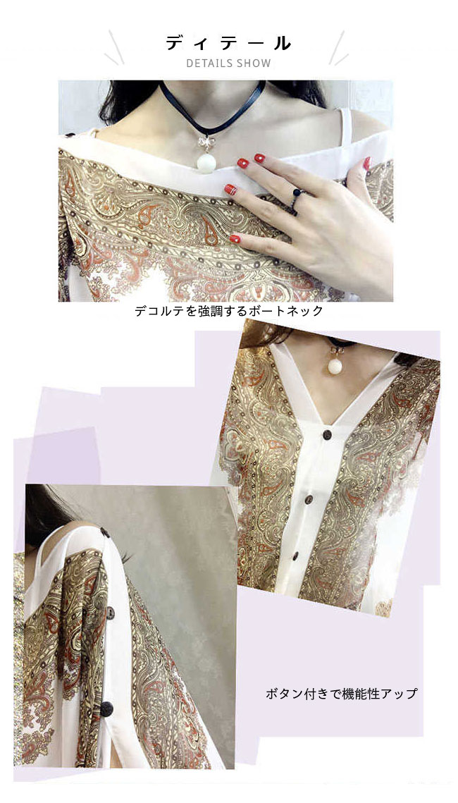 デザイン的にはエレガントなエスニック柄のプリントがポイント