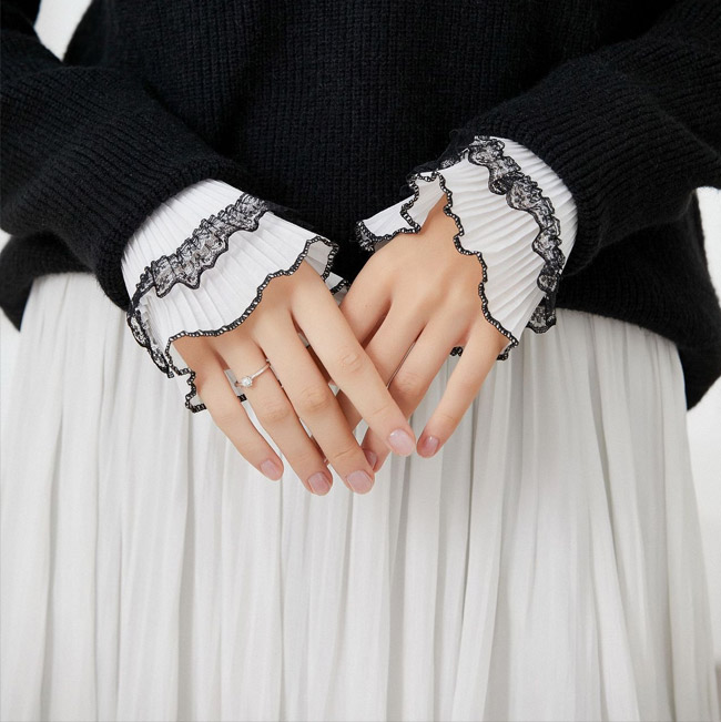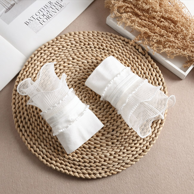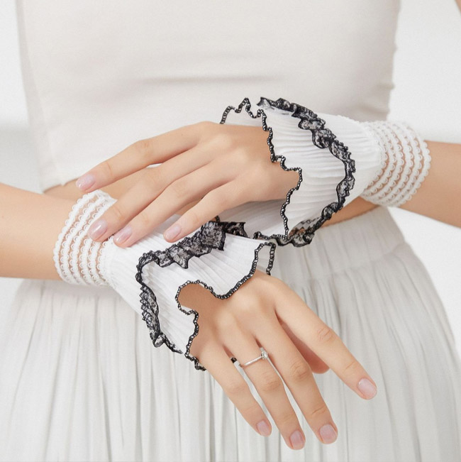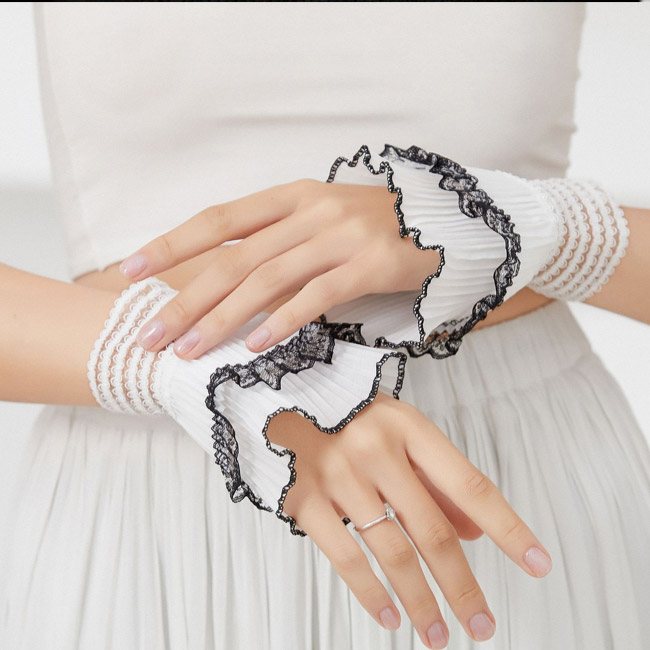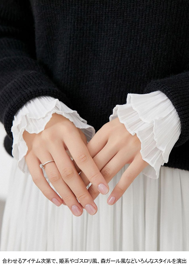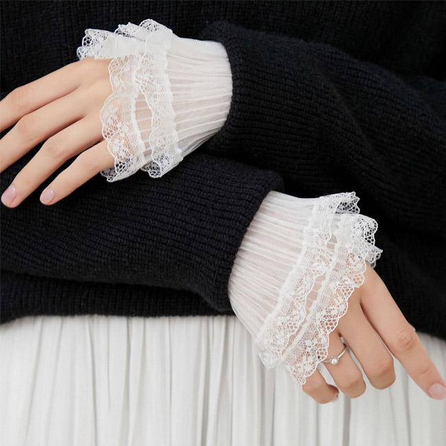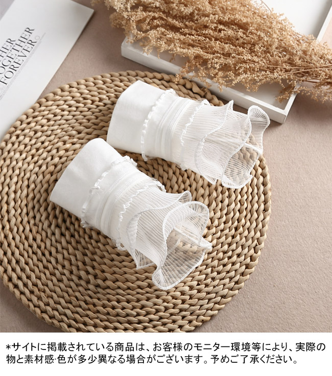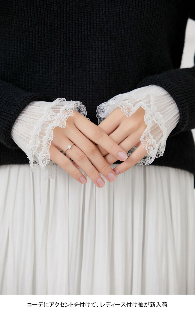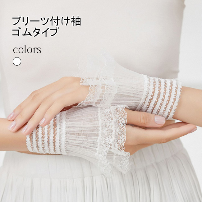 付け袖 ゴムタイプ レディース 付けそで レース プリーツ チュール付け袖 レトロ レース付け袖 姫系 つけそで レイヤード ファッション小物 つけ袖 白 ホワイトレース 森ガール フレア
