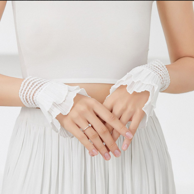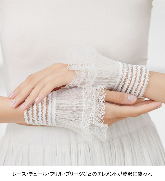 レース チュール フリル プリーツなどのエレメントが贅沢に使われ