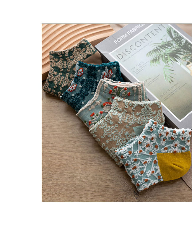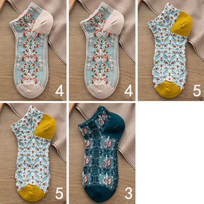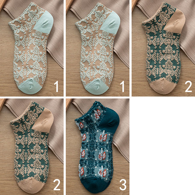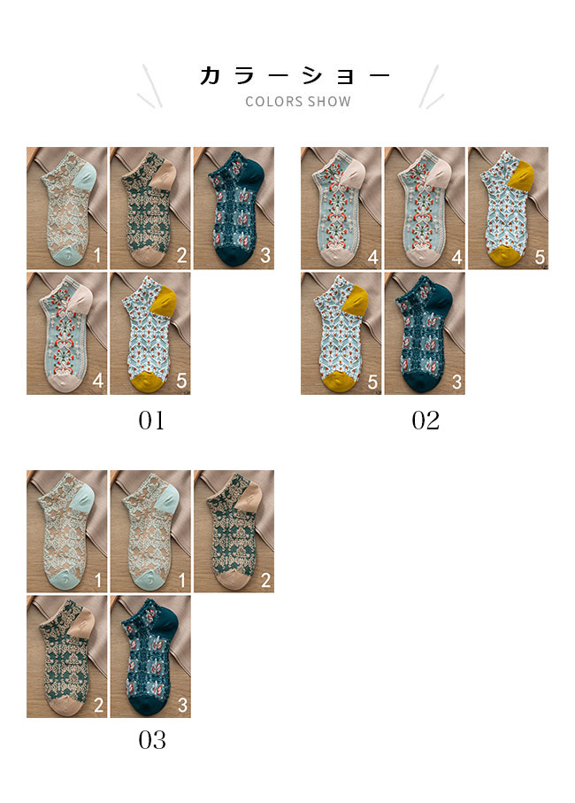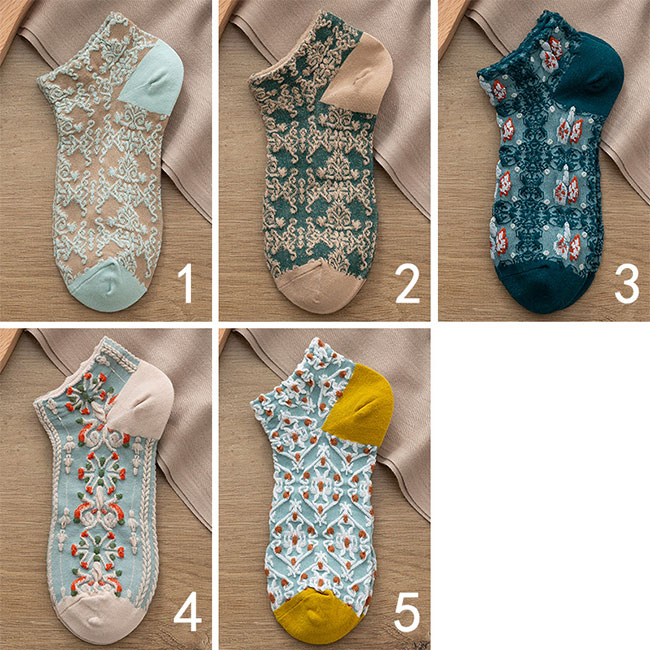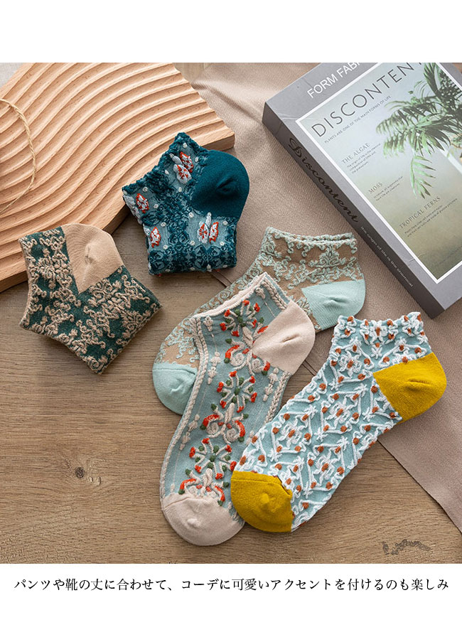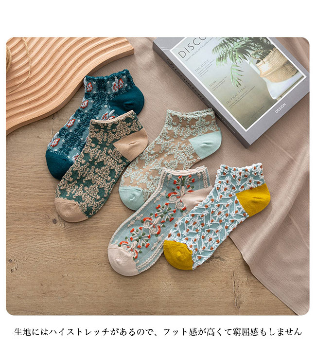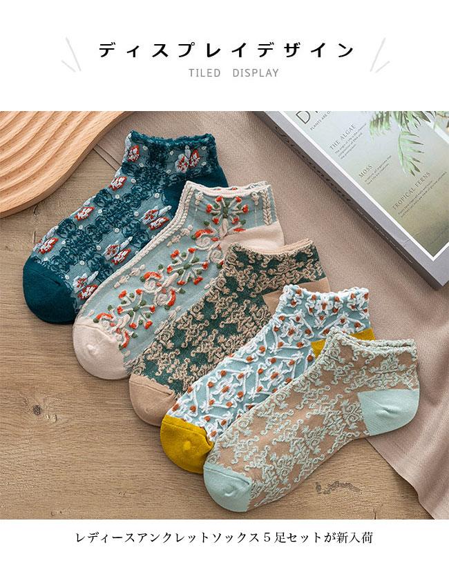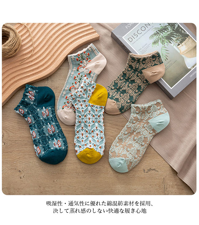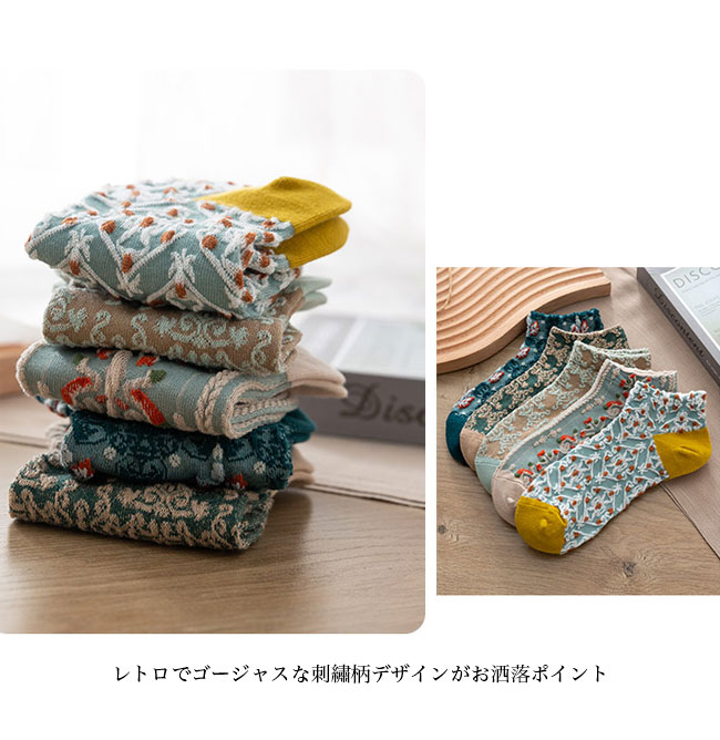 アンクレットソックス レディース 柄ソックス 5足セット 靴下 刺 ソックス 総柄 ペイズリー柄 アンクルソックス 5足 ジャカード 綿混 春 秋 コットンソックス レトロ 女性 大人 高校 お洒落