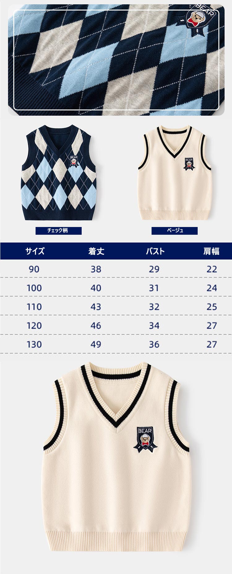 キッズ ニットベスト 女の子 男の子 キッズ ベビー マタニティ 新登場! チェック柄 ベージュ 90 100 110 120 130