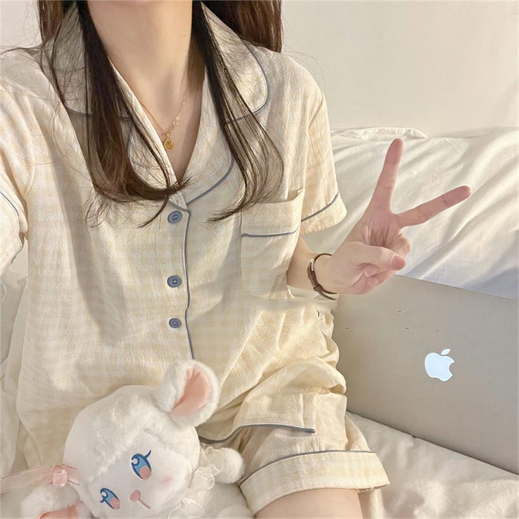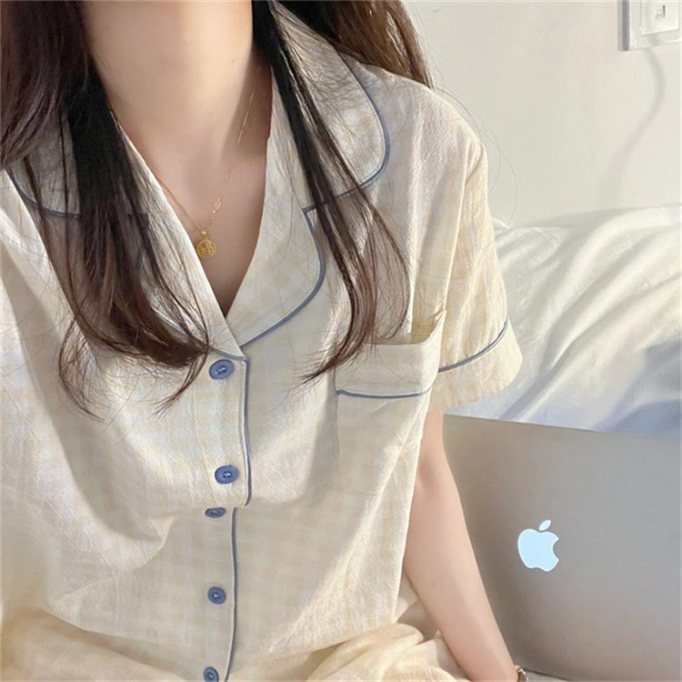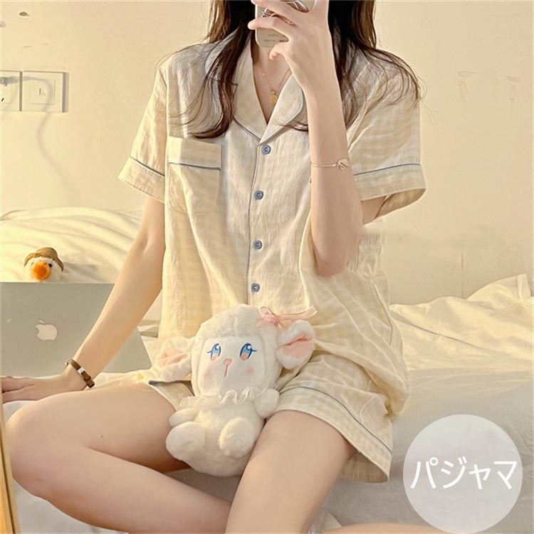 2点セット レディース パジャマ チェック柄 夏 可愛い ルームウェア 半袖 半ズボン 部屋着 婦人 女性 カジュアル ナイトウェア 前開き 上下セット テイラード 誕生日 プレゼント 春 寝巻き