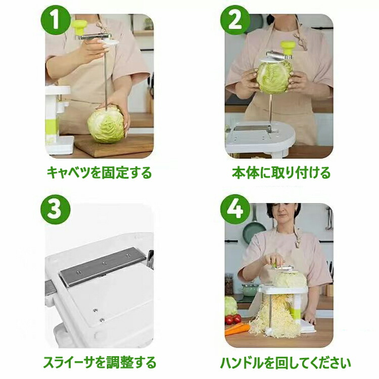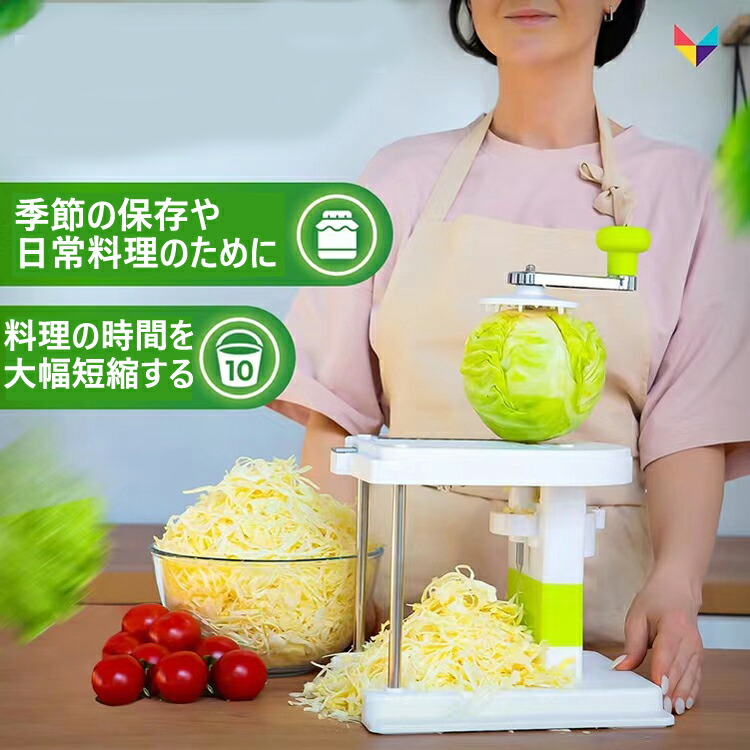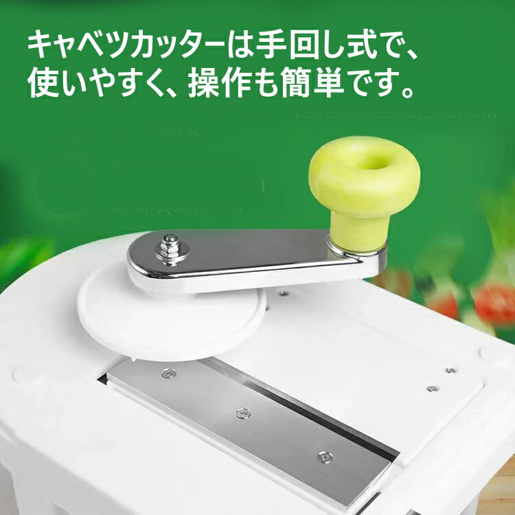 キッチン料理のヘルパーです。 キャベツカッターは手回し式で、使いやすく、操作も簡単です。