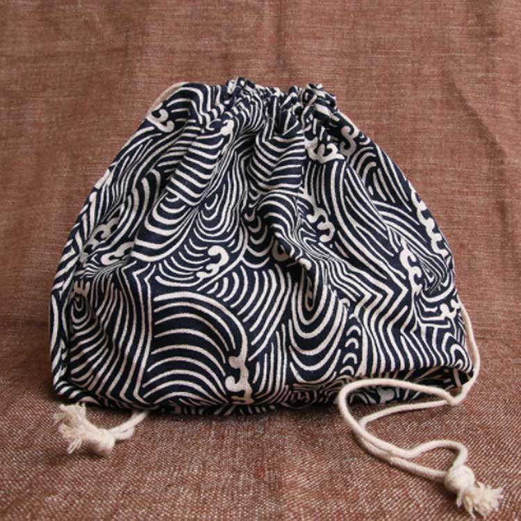 シンプルな使いやすい巾着袋タイプの和風ランチバッグ。