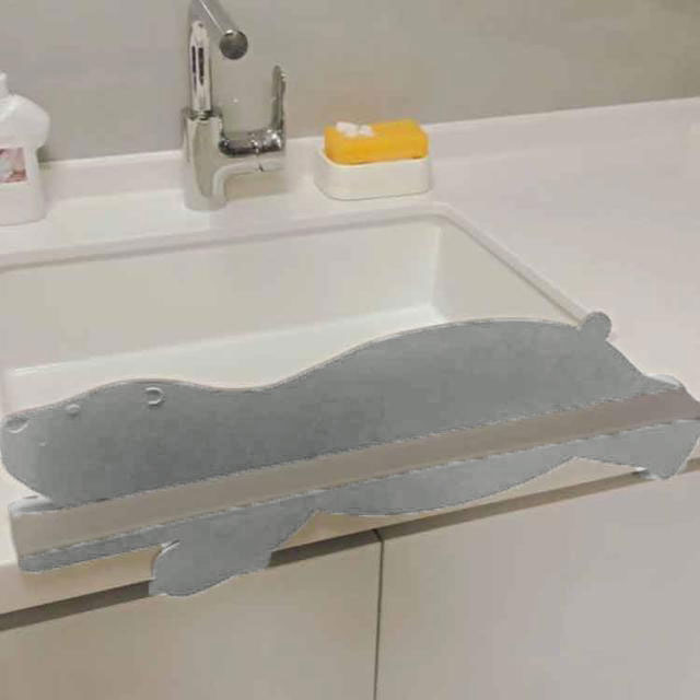 シンクの水滴の飛散を防いでくれるカバーが登場!さらにお腹周りの服が濡れるのも心配なし。