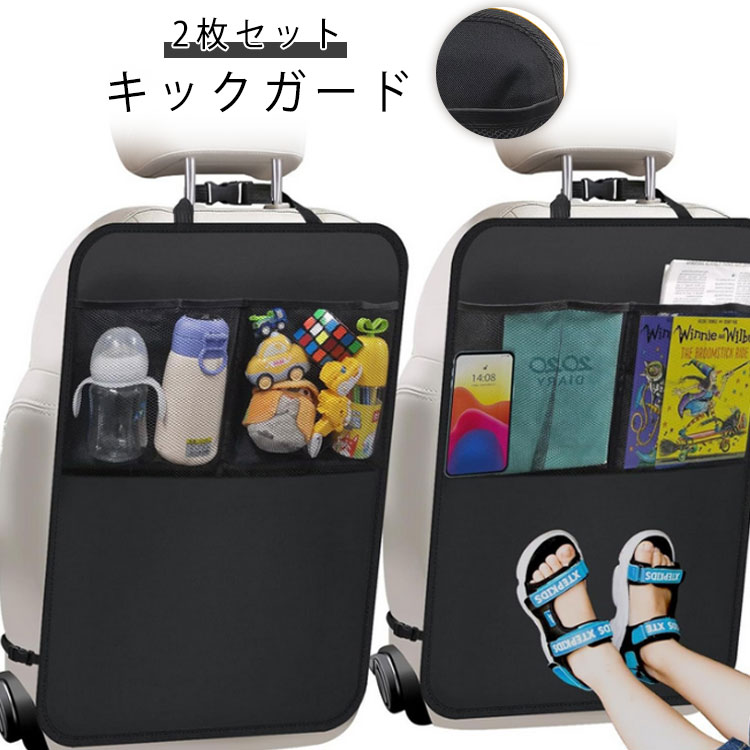 2枚セット キックガード 車 シートバックポケット 後部座席 収納ポケット キックカバー キックマット ドライブポケット 小物入れ シート カバー カー用品 収納