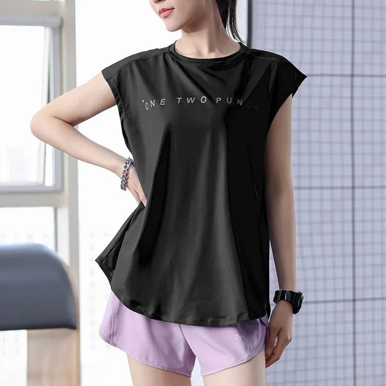 S-2XL!吸汗速乾ストレッチ素材を使用、フレンチスリーブヨガトップス。