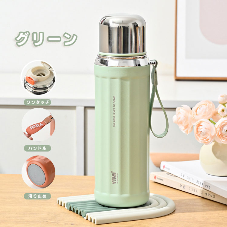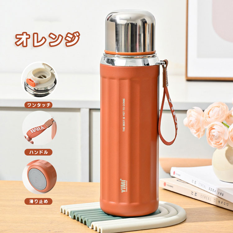 水筒 コップ付き 茶水分離 530ml 弁当箱 水筒 水筒 マグボトル 人気 ベージュ ブラック ピンク グリーン オレンジ 530ML 630ML