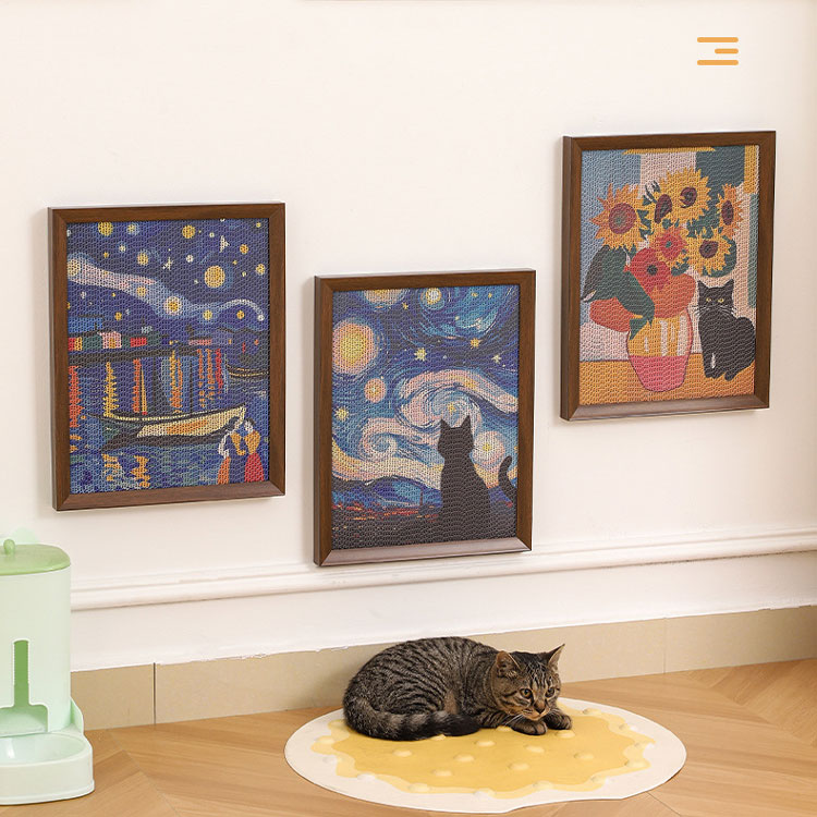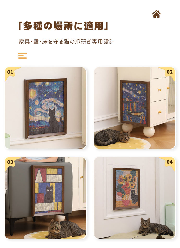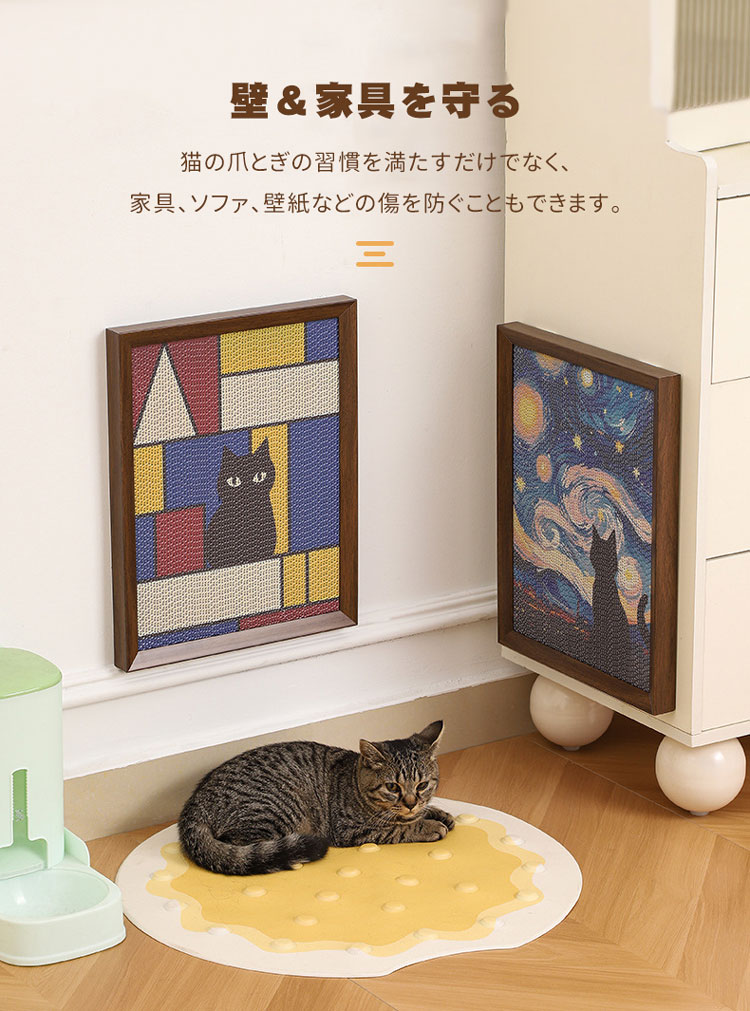 猫 爪研ぎ 壁に貼る ダンボール 爪とぎ 絵画 アートパネル ベッド ソファー アート 油絵風 かわいい ストレス解消 爪磨き 可愛い おしゃれ キャット家具傷防止 家具 床 壁に ソファ