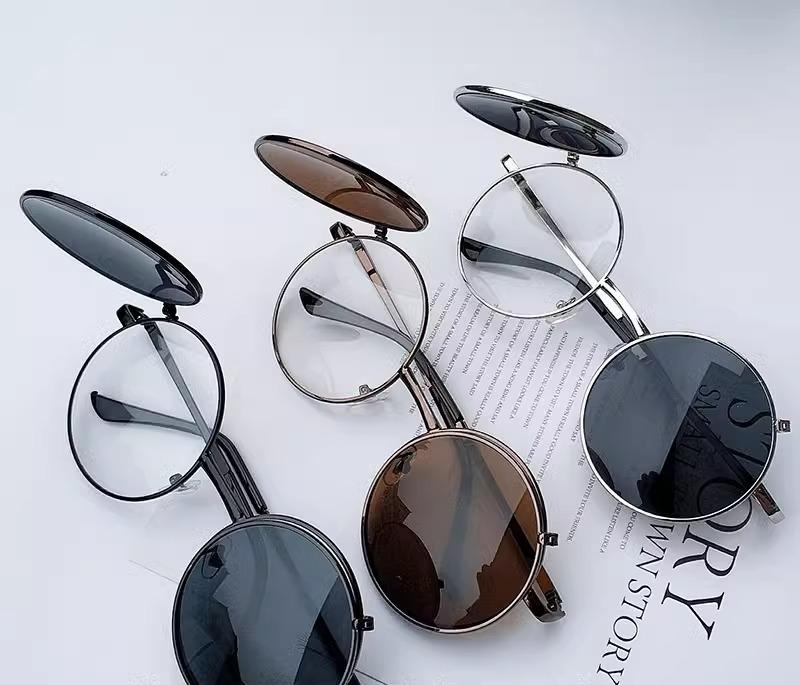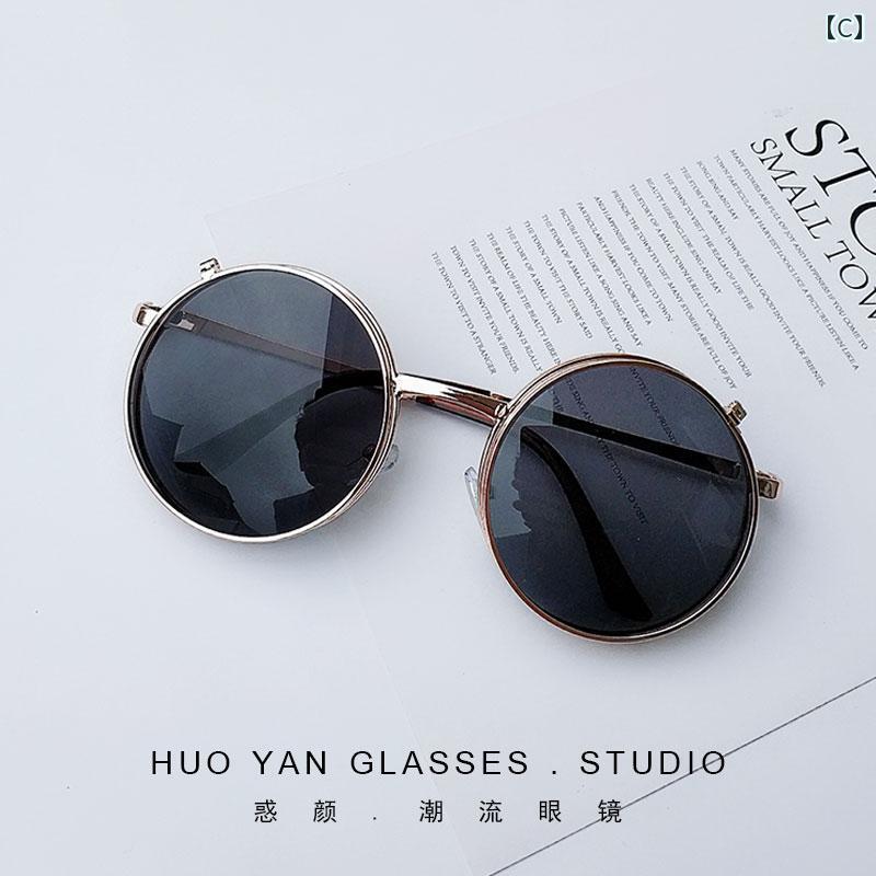 スチームパンク ゴーグル コスプレ 仮装 眼鏡 サングラス レディース メンズ メガネ パンク フリップ 二 重層 デュアル ラウンド ブラック シルバー レトロ