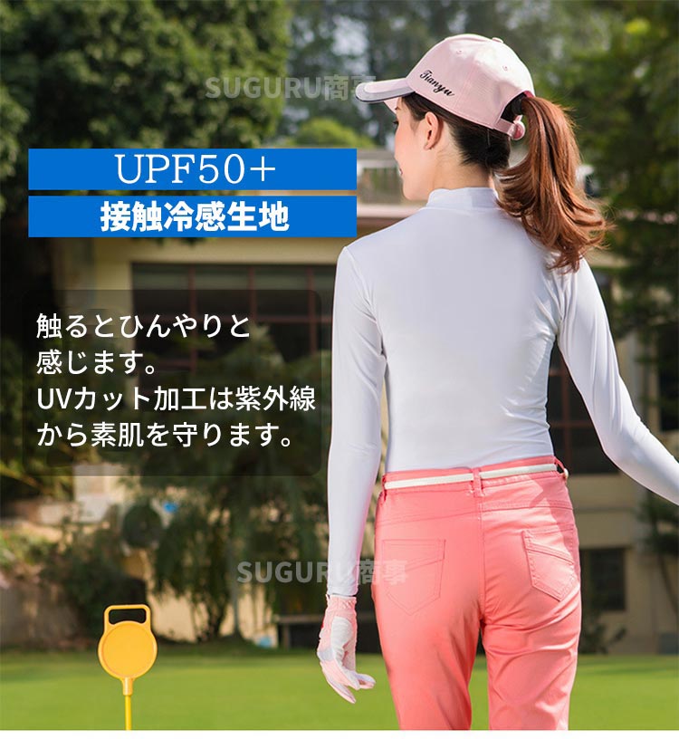 ゴルフウェア UVカット インナー シャツ 冷感 レディース 長袖 ハイネック UPF50+ 涼しい ゴルフシャツ ラッシュガード 吸汗速乾 通気 ゴルフ ランニング 運動 日よけ テニス
