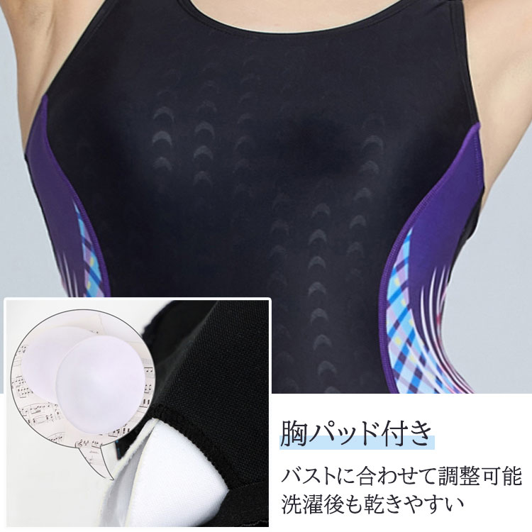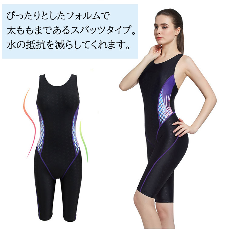 フィットネス水着 競泳水着 スイムウェア レディース オールインワン パッド付き 女性 練習用 トレーニング スクール水着 太ももカバー 海 プール スイミング 体型カバー 女の子 学生 スポー 女子