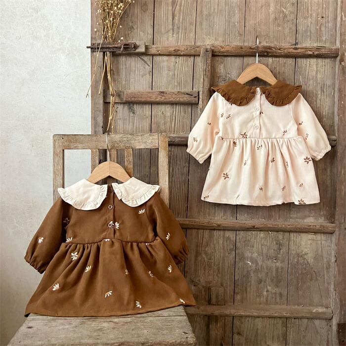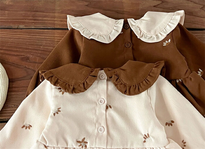 ベビードレス 女の子 赤ちゃん ワンピ ベビー ベビー服 ファッション ワンピース 早い者勝ち ベージュ ブラウン 73cm 80cm 90cm 100cm 110cm