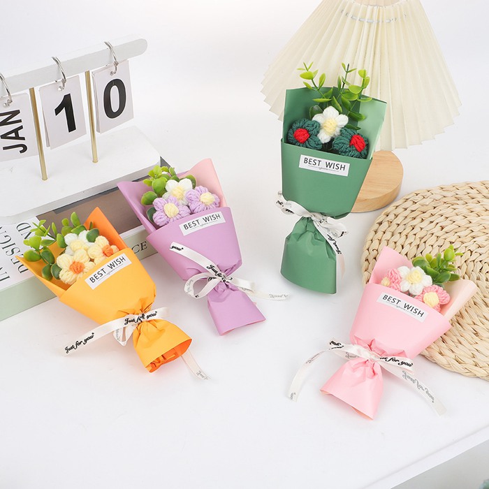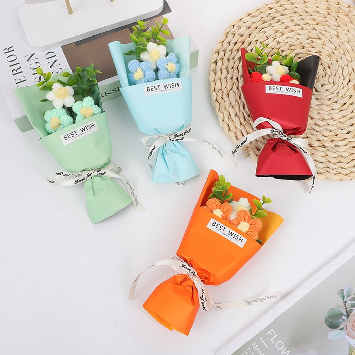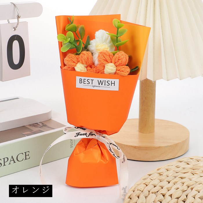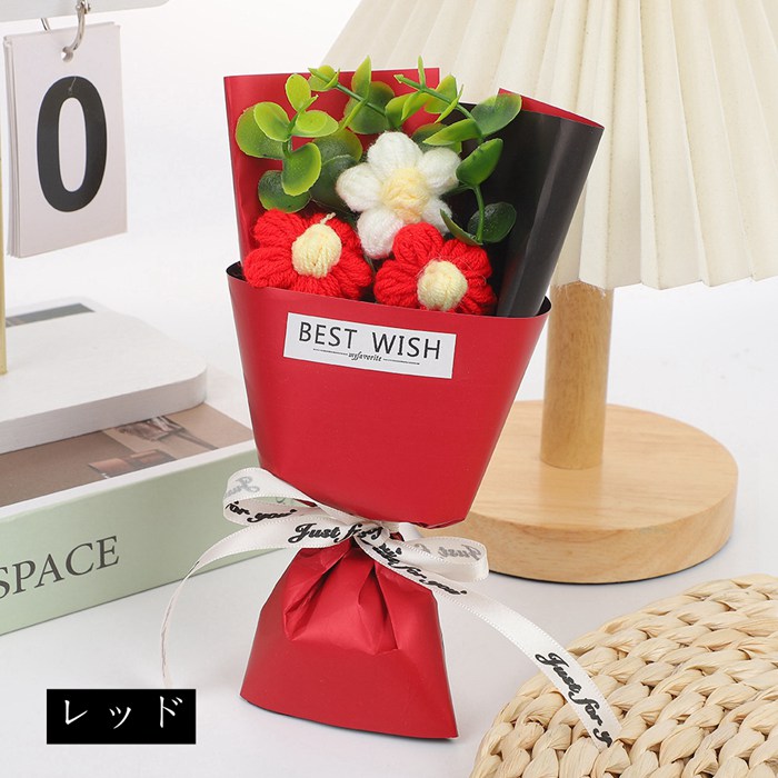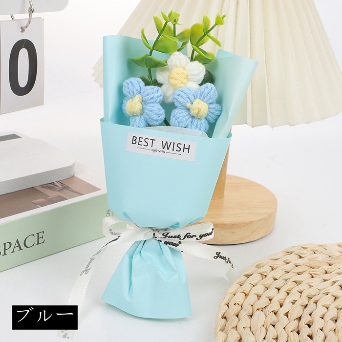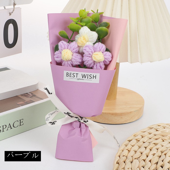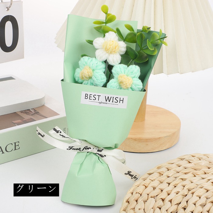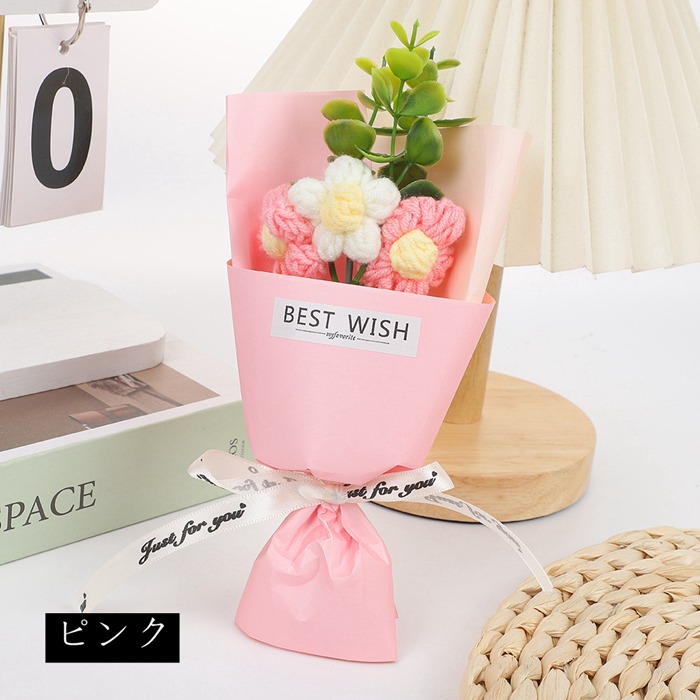 ニットブーケ 母の日プレゼント かぎ針編み ミニブーケ 手作り花 造花 花束 毛糸 手つくり 可愛い フラワー 飾り 記念日 ギフト プレゼント 誕生日 枯れない花 母の日 父の日 敬老の日 お祝い