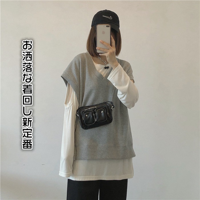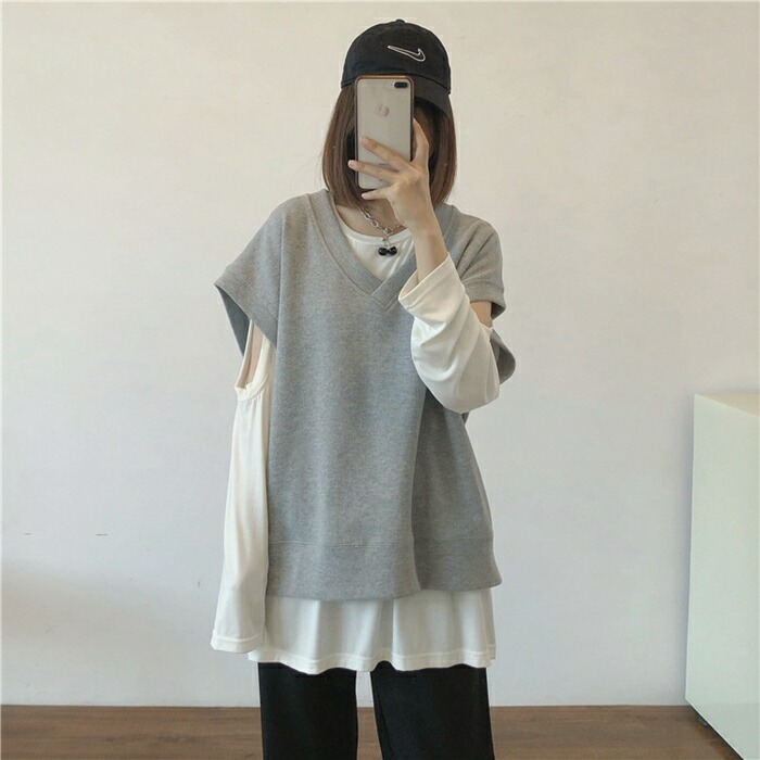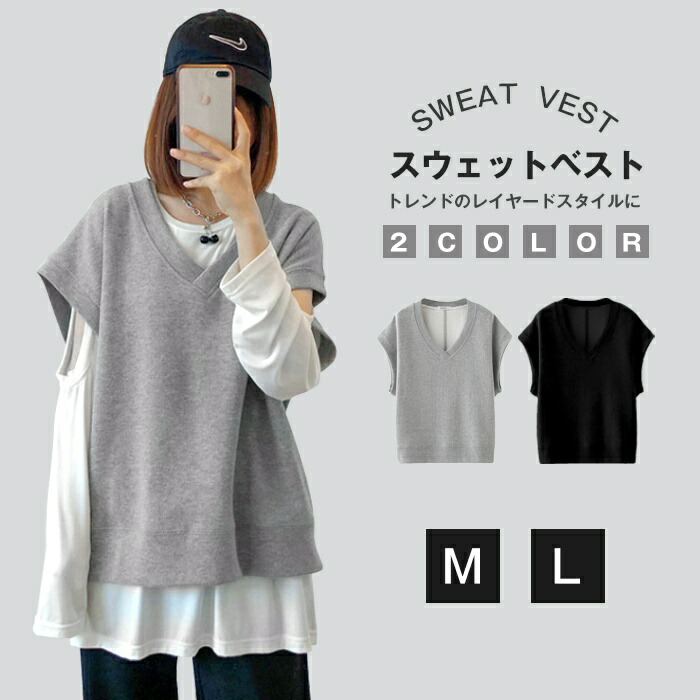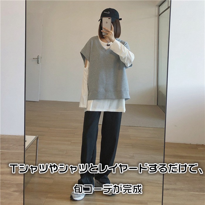 ベスト レディース トップス スウェット Vネック ゆったり レイヤード 女性 ノースリーブ コーデ カジュアル ファッション 春 秋 おしゃれ