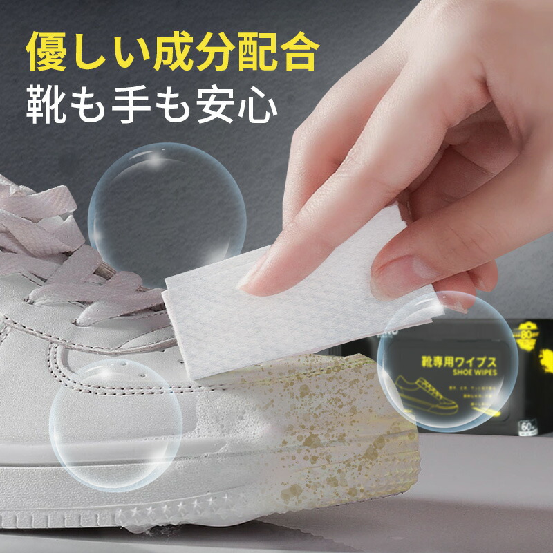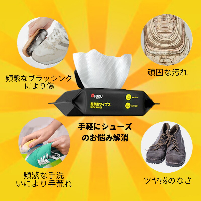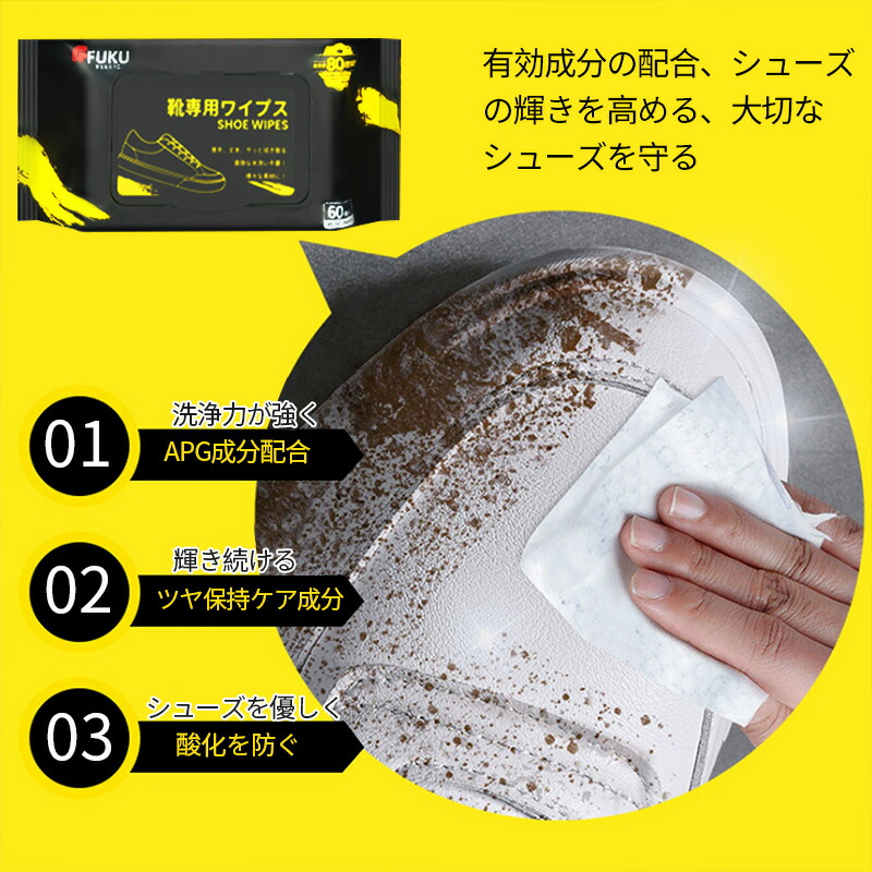 靴 クリーナー 汚れ落とし 靴磨き スニーカークリーナー 厚手 丈夫 簡単 ウェットシート シューケア 靴汚れ 靴クリーナー 手間いらず ピカピカ サッとふき取り 60枚入り FUKU 上履き
