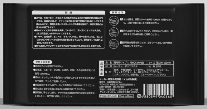 靴専用クリーナー 厚手 丈夫 サッとふき取り 60枚入り ウェットシートタイプの靴クリーナー ツヤツヤピカピカ ウェットタイプ どんな靴の色でもOK