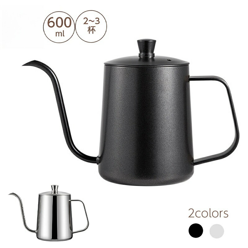 コーヒードリップポット 600ml 目 シルバー目盛あり ブラック目盛あり