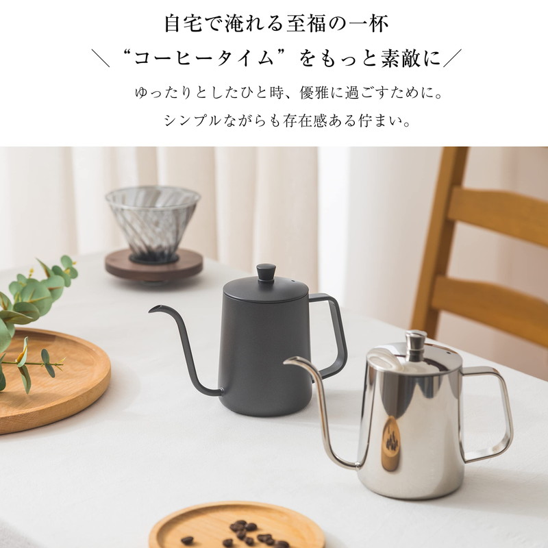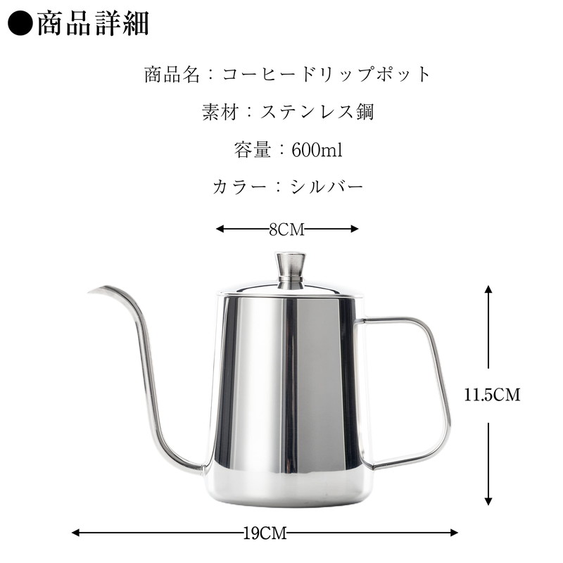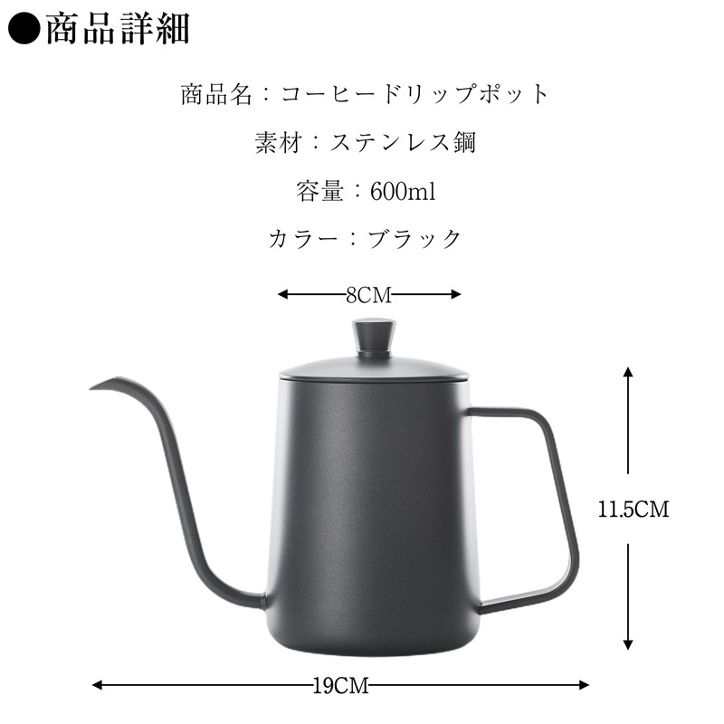 コーヒードリップポット 600ml 目盛付き 細口 ポット コーヒーポット ドリップポット アウトドア IH 対応 キャンプ用 おしゃれ コーヒー グッズ ステンレスケトル コーヒーケトル コ ケトル