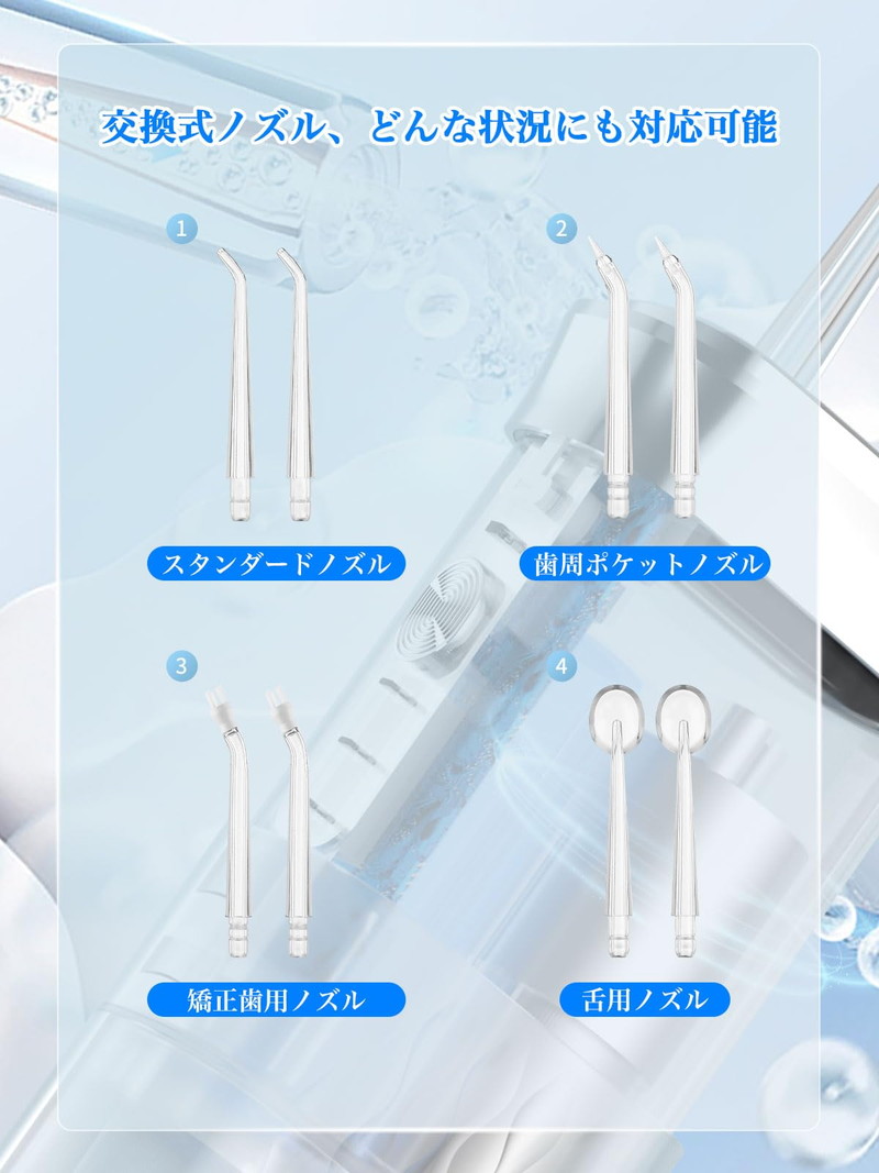 【様々な歯の問題に対応】歯周炎・歯の感度などの様々な歯の問題に対応できます。電動ウォッシャーを使用することで、これらの問題の症状を軽減し、口腔の健康を維持することができます。