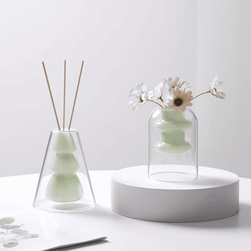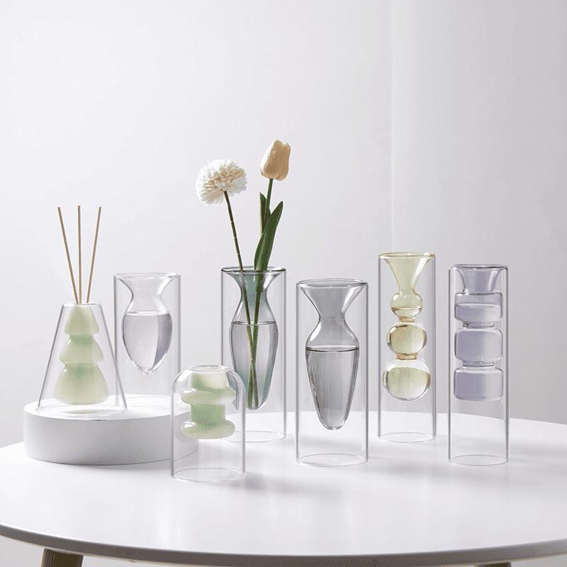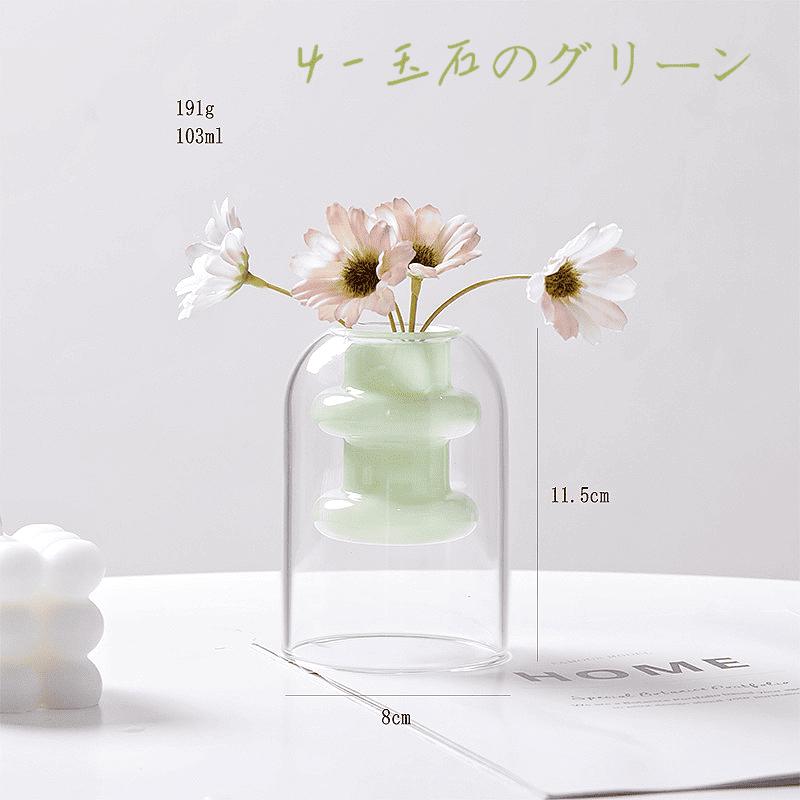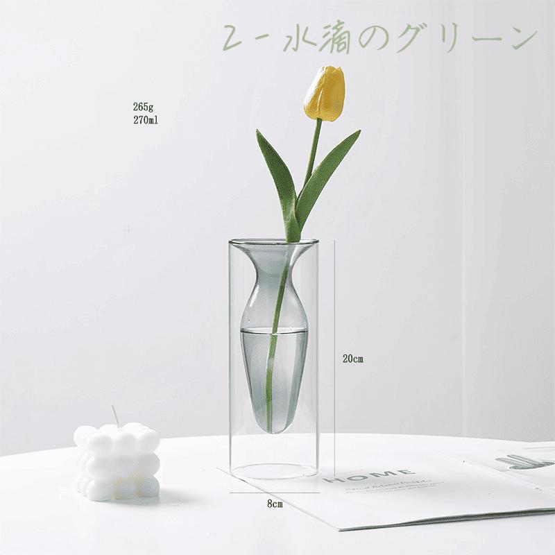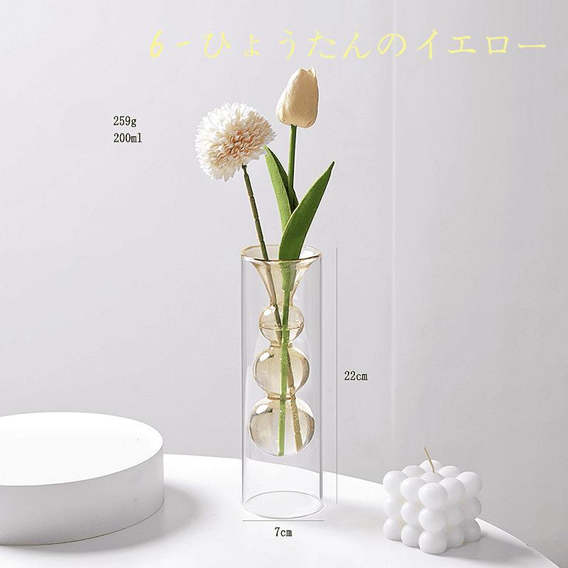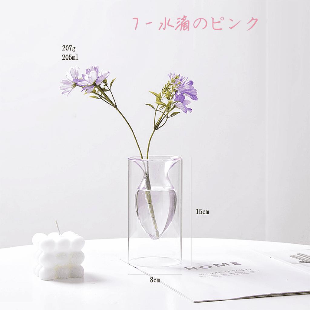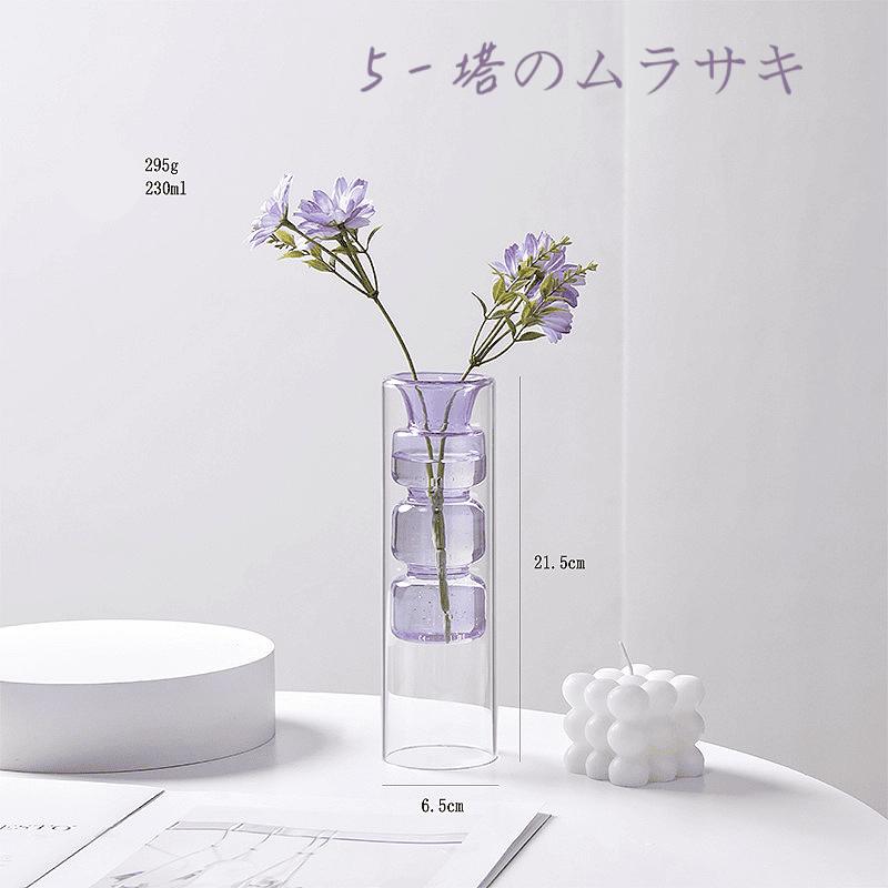 花瓶フラワーベース 透明 デザイン お 1クリスマスツリー 2水滴のグリーン 3湖のグレー 4玉石のグーリン 5塔のムラサキ 6ひょうたんのイエロー 7水滴のピンク