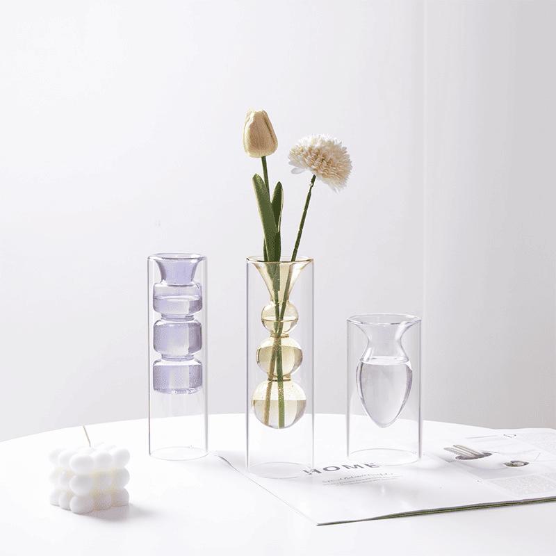 花瓶フラワーベース 透明 デザイン おしゃれ 一輪挿し インテリア 工芸硝子 北欧 クリア 枝物 観葉植物 生け花 華道 茶道 フラワー 雑貨 かわいい ギフト プレゼント 母の日 丸 筒 贈り物