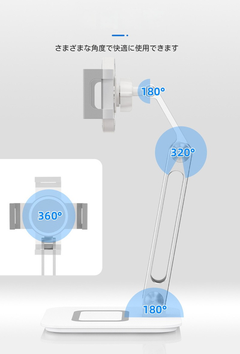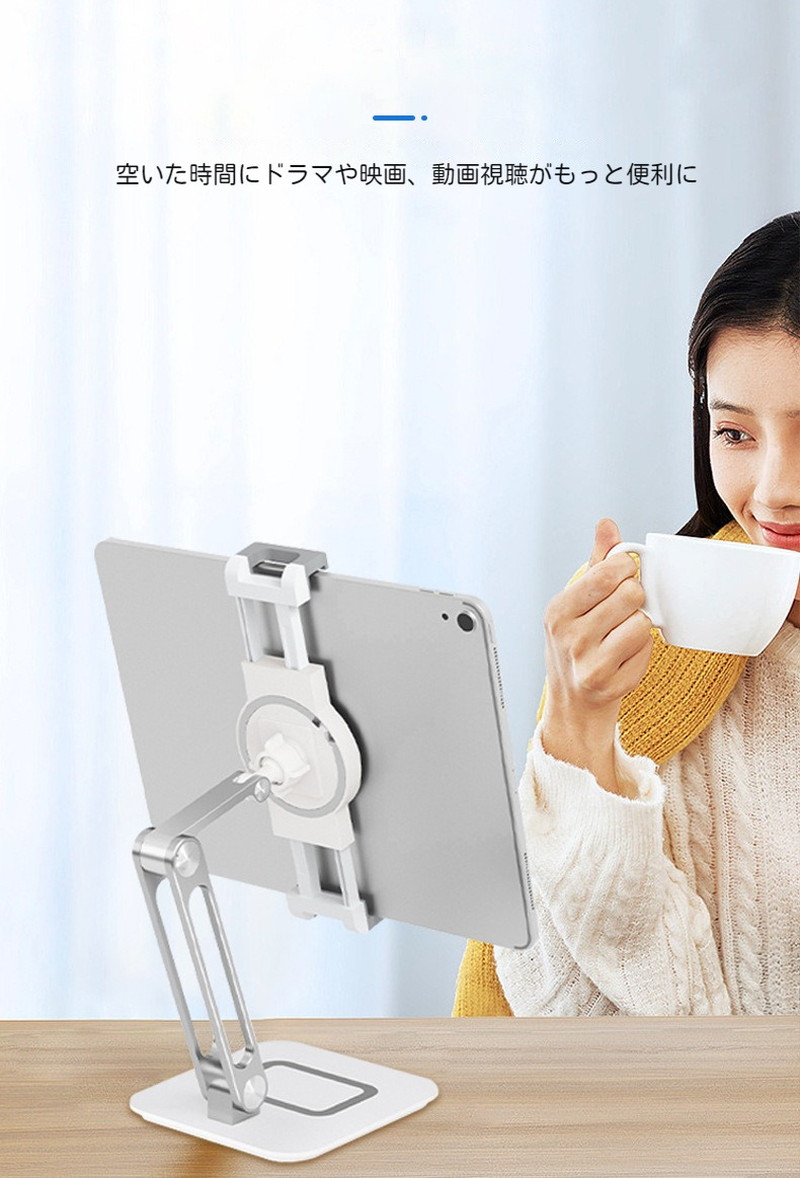 タブレットスタンド 卓上用 スマホスタンド タブレット アーム スタンド アイパッドスタンド pcスタンド 横 安定 揺れない 360回転 縱き