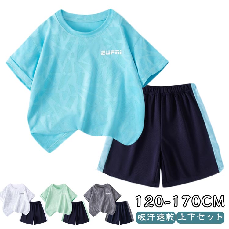トレーニングウェア バスケットボール キッズ 吸汗速乾 セットアップ ジュニア 夏 120cm Tシャツ ハーフパンツ ライン入り 140cm 半袖 男の子 ショートパンツ サッカー 小学生
