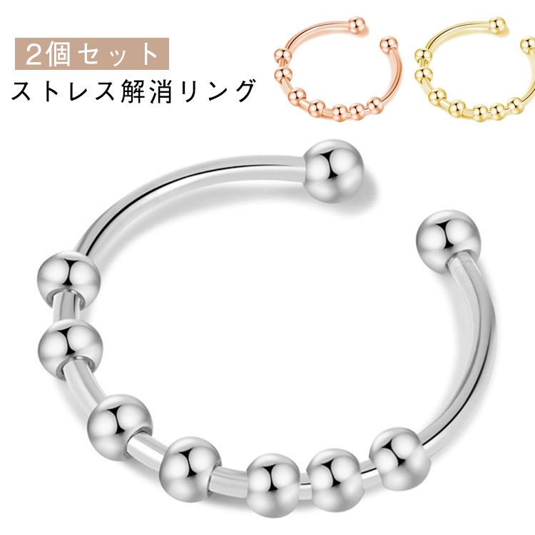 リング ストレス解消リング 男女兼用 男女兼用アクセサリー 指輪 リング 新作 2個ブラック 2個シルバー 2個ゴールド 2個ローズゴールド