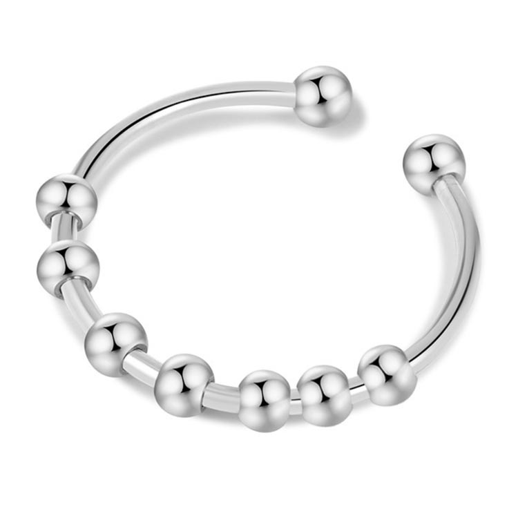 リング ストレス解消リング 男女兼用 ステンレススチール 不安解消ステンレス ストレス解消 不安 ビーズ付き 可動ランナー ジュエリー ユニ 回転 心のリラックス アンスト 調節可能