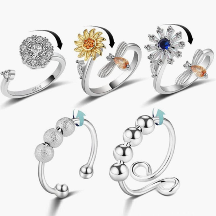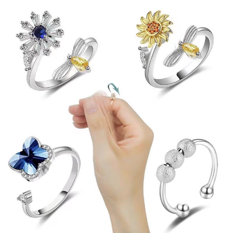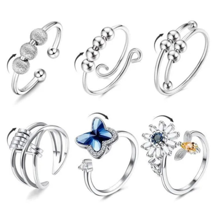 【不安を和らげるリング】これらの不安を和らげるリングは回転可能で、注意をそらし、退屈、不安、ストレスを和らげることができます。