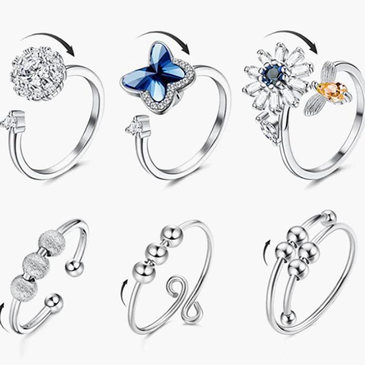 4 5 6個セット 重ね付け可能リング 金属 ビーズ付き ストレス解消 ストレス解消リング リング 不安を和らげるリング 不安スピリチュアルズ オープンセット 不安解消 調節 回転