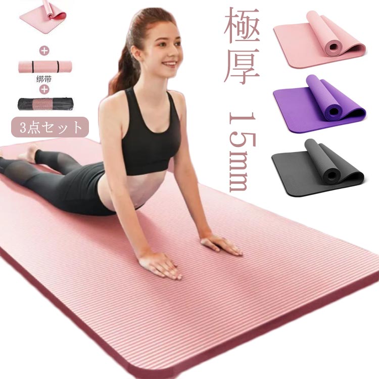 3点セット ヨガマット 幅広い 185 スポーツ アウトドア 超目玉商品 3点セットパープル 3点セットブラック 3点セットピンク