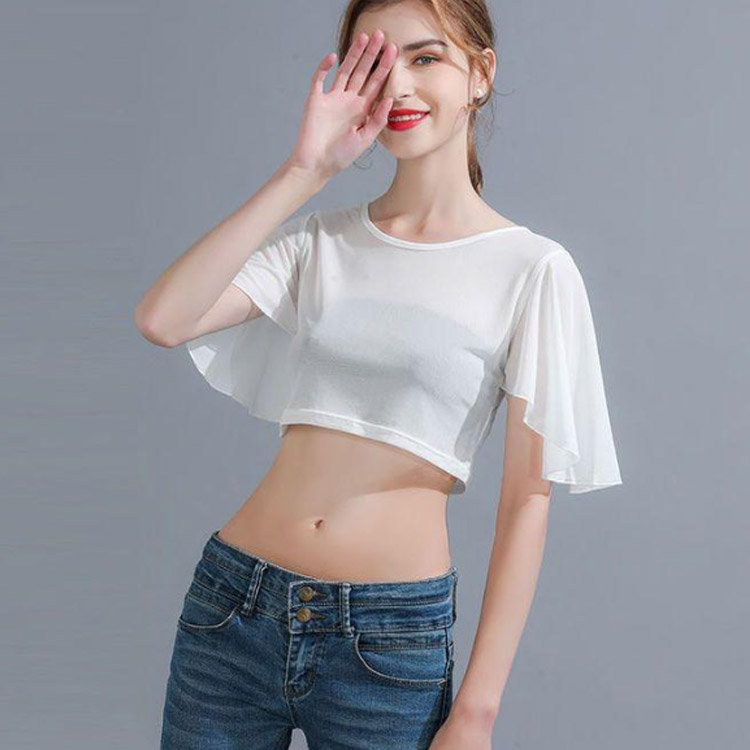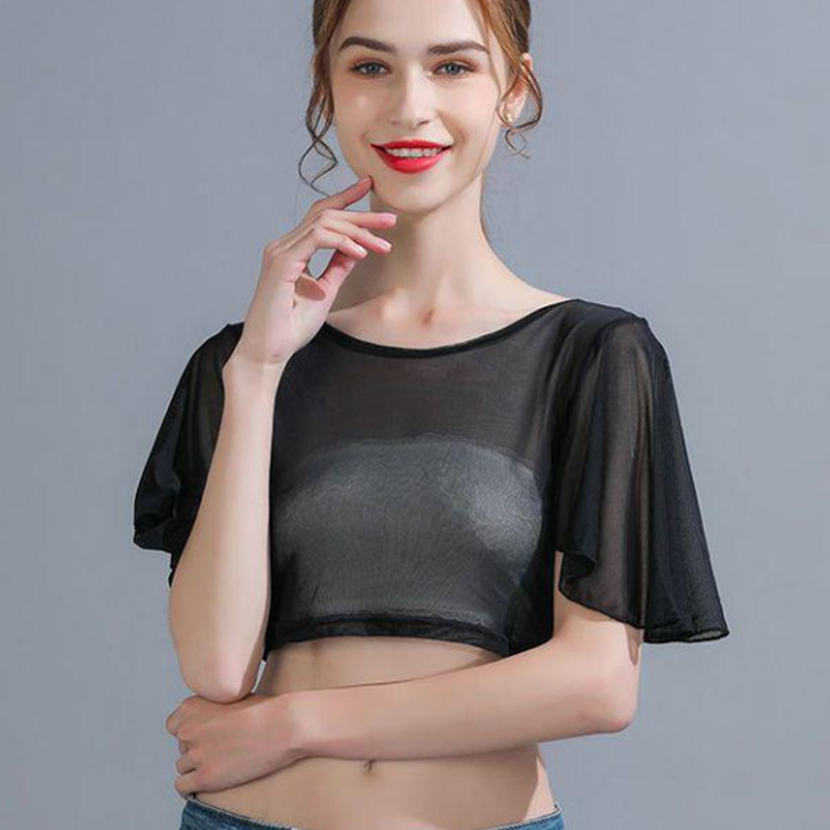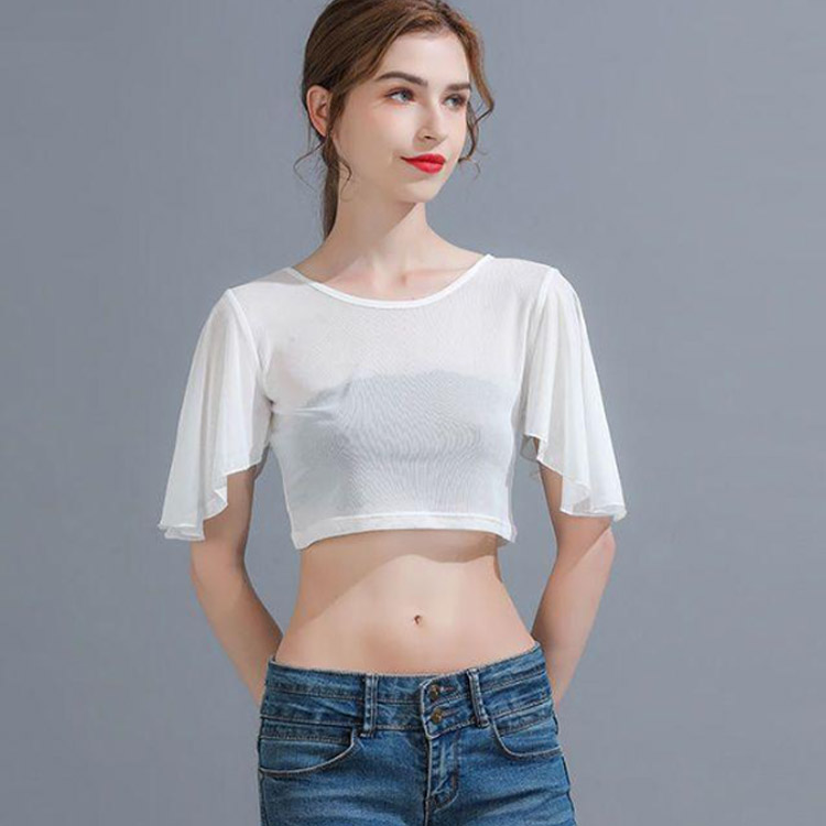 二の腕を隠すフレアスリーブのインナートップス。