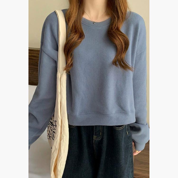 ショート丈 スウェット レディース トレーナー クロップド丈 カットソー 長袖 ドロップショルダー 体型カバー クルーネック トップス 春 秋 スウェット生地 通勤 通学 オフィスカジュ プルオーバー