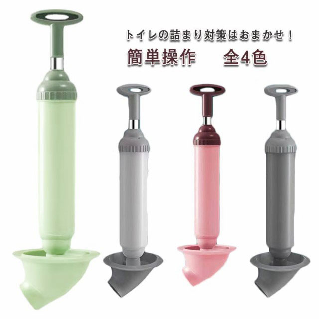 パイプクリーナー ラバーカップ付きパイプクリーナー 真空式 トイレの詰まり用 洋式トイレ用 ハンドル操作 簡単操作 便利グッズ 全4色 押し出す