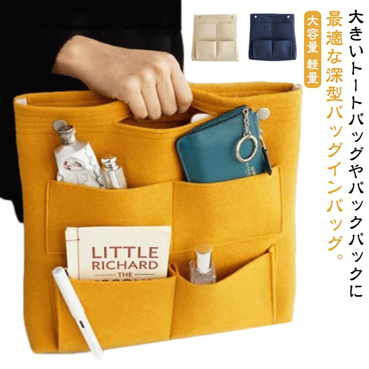 バッグインバッグ 縦型 深型 大きめ バッグ バッグ用アクセサリー バッグオーガナイザー バッグインバッグ 特集 イエロー オレンジ ネイビー ブラック ブラウン ベージュ ダークグレー ライトグレー