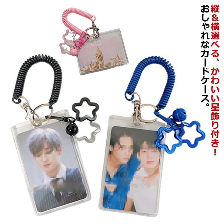 縦&横選べる 推し活 トレカケース パスケース 定期入れ icカードケース IDカードホルダー 社員証 通行証 ICカード カード保護 タテ型 縦型 キーホルダー 可愛い おしゃれ 星 クリアケース