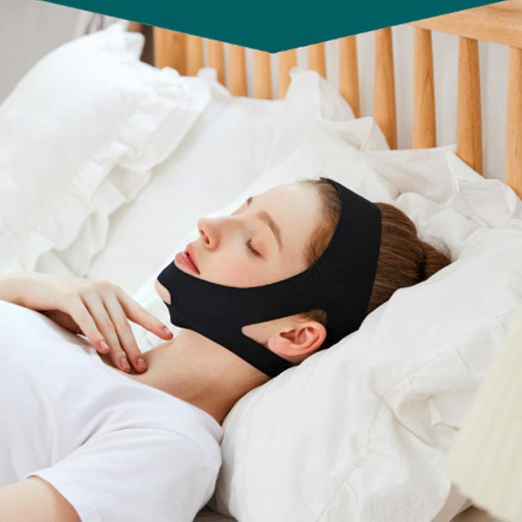 就寝前にあごを固定して、いびきをかきにくくします。