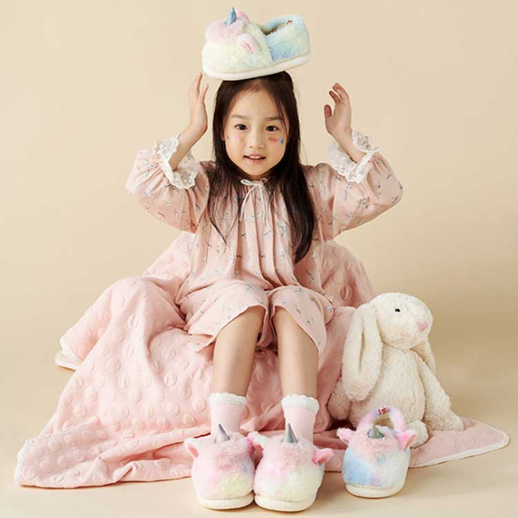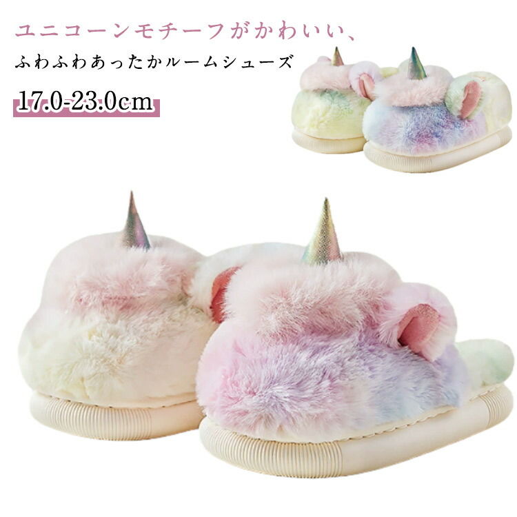 ユニコーンモチーフがかわいい、ふわふわあったかルームシューズ【17.0-23.0cm】