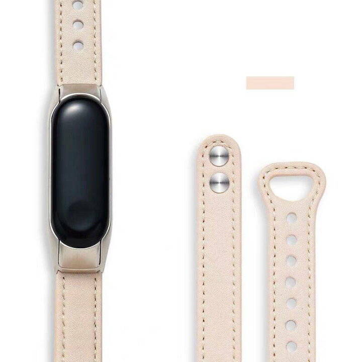 Xiaomi Mi band 5 バンド xiaomi mi 4 3 交換ベルト フェイクレザー6 ベルト 高品質 柔らかい かっこいい リベット ステンレス レザー交換バンド