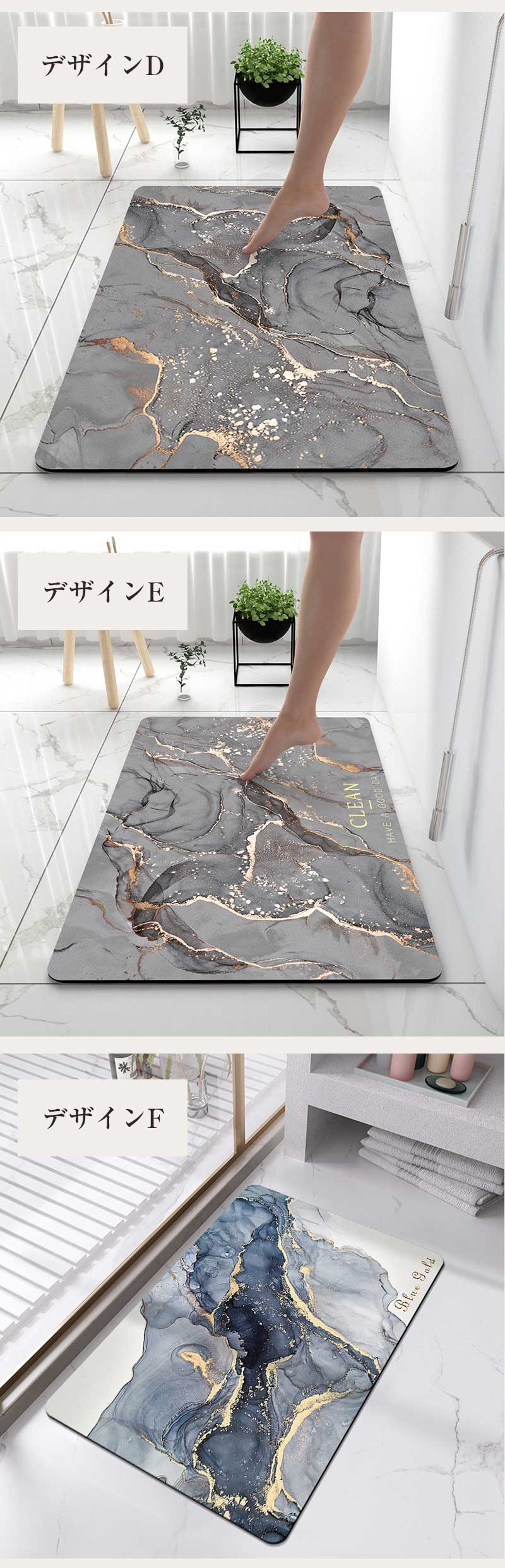 バスマット 珪藻土 かわいい 速乾 大 バス用品 バスマット 豊富な品揃え デザインA デザインB デザインC デザインD デザインE デザインF 40*60cm 50*80cm 60*90cm