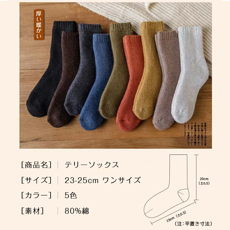 靴下 レディース ソックス 厚手 暖かい 快適 人気 通勤 通学 5足セット 無地 綿混 秋冬 抗菌防臭 伸縮性 シンプル クルーソックス カジュアルソックス 人気靴下 自由組み合わ ポカポカソックス