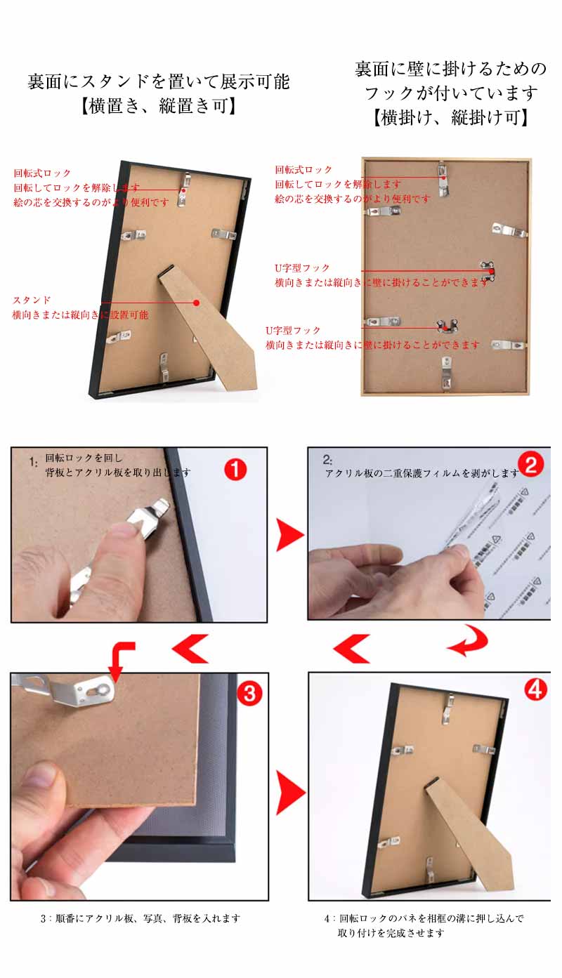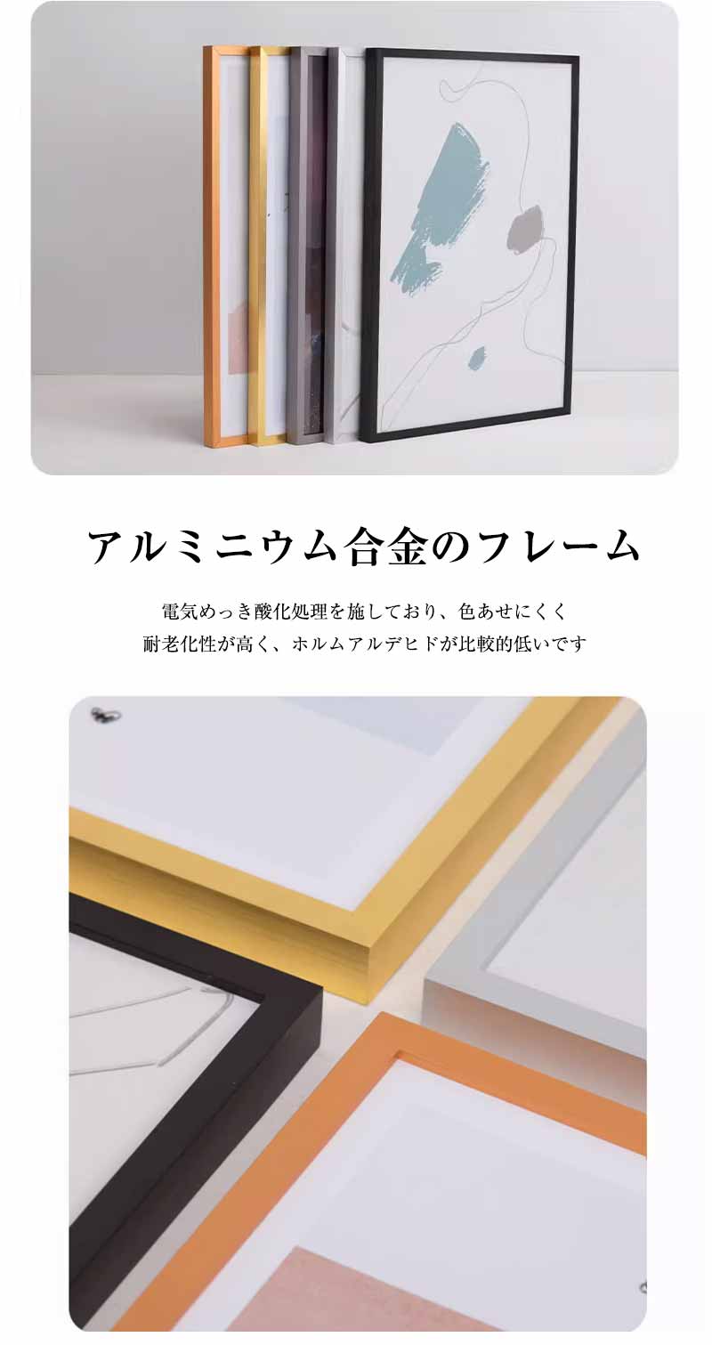 フォトフレーム シンプルタイプ 壁掛け チタンゴールド クリアゴールド シルバー グレー プラック A2(壁掛けタイプ) A3(壁掛けタイプ) A4(置き掛け両用)