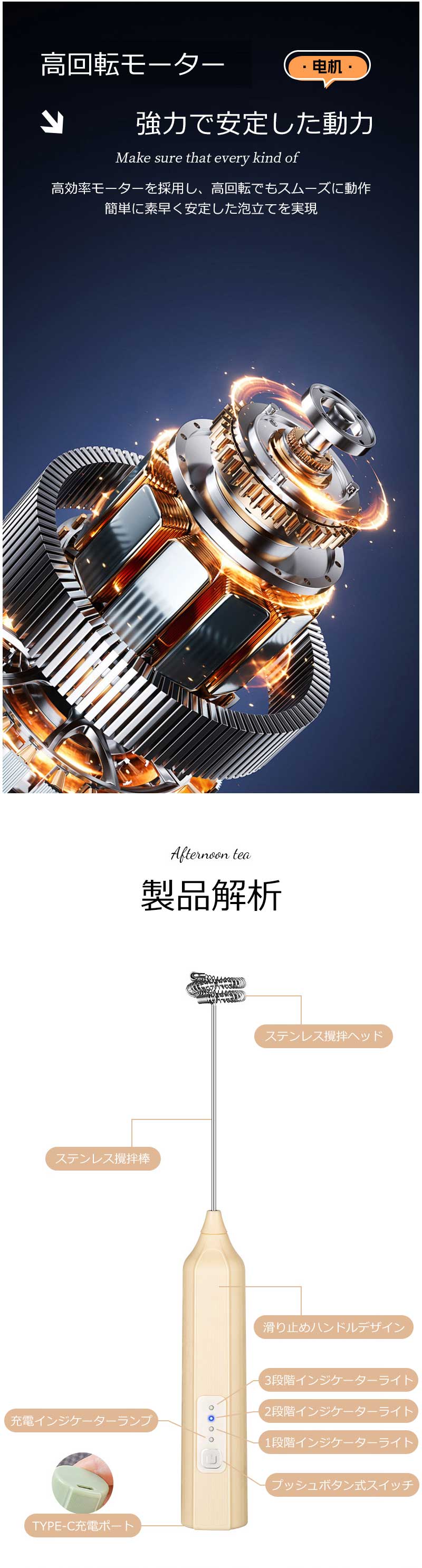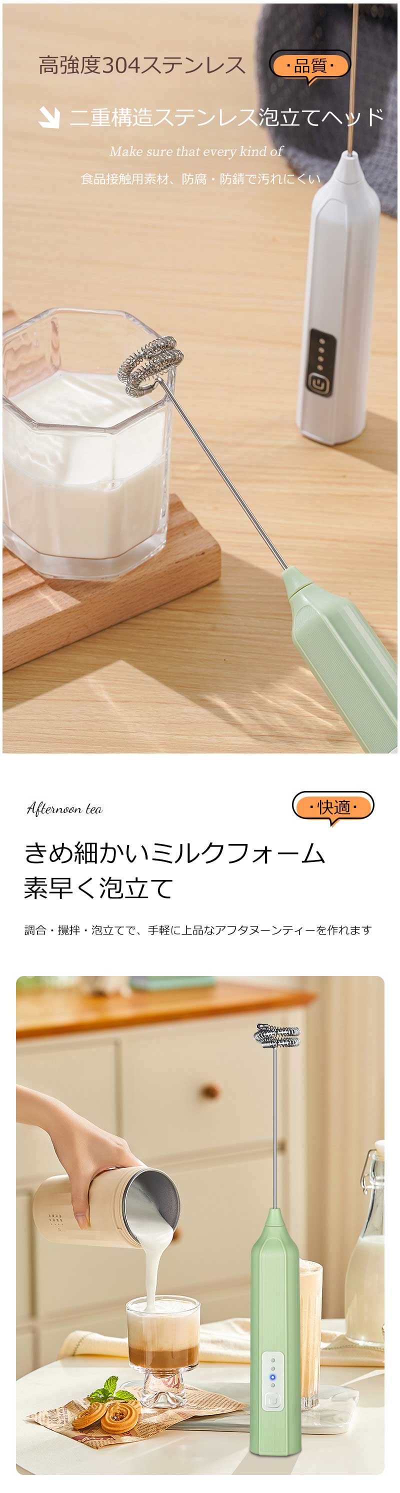 ミルク泡立て器 電動 ミルクフォーマー 小型 電動クリーマー ハンドヘルド 食品級304ステンレス鋼 時短料理 操作簡単 撹拌 パワフル コンパクト 超軽量 水洗い可能 ミニ泡立て器 ハンドミキサー メーカー1年保証