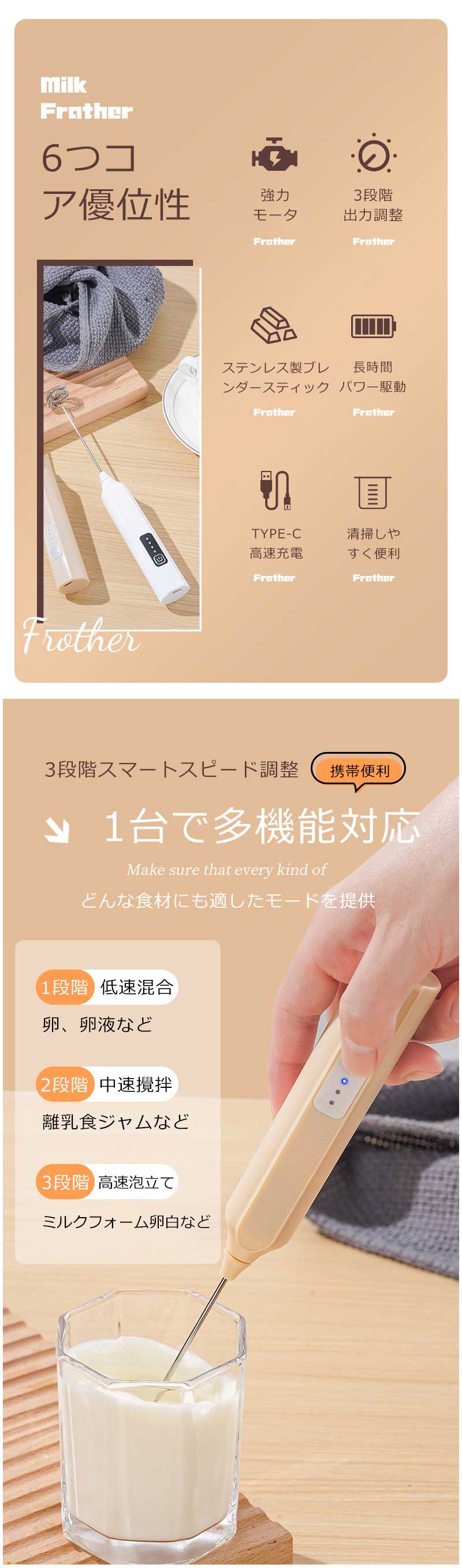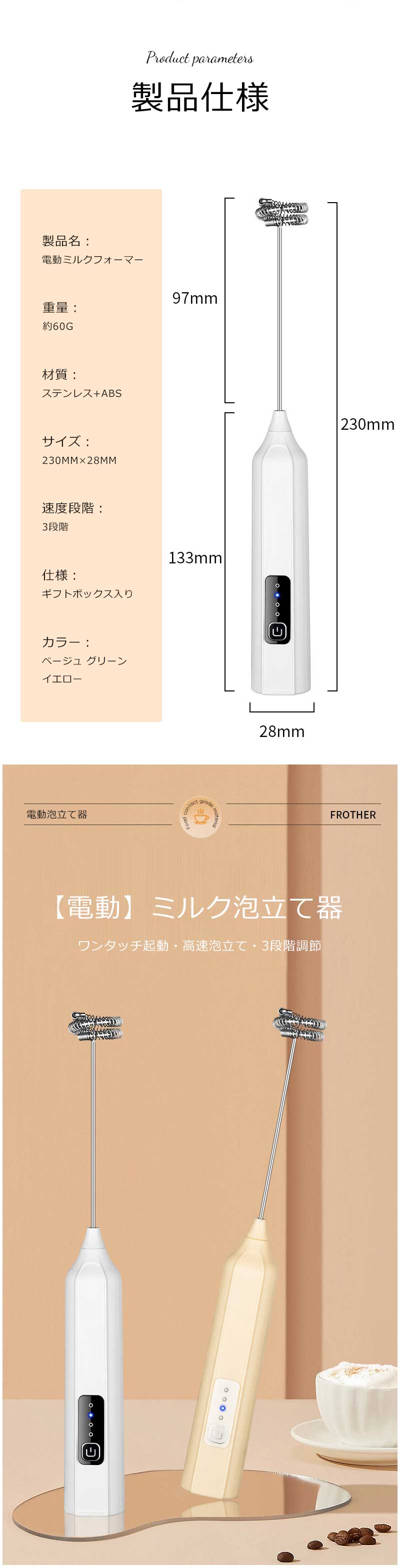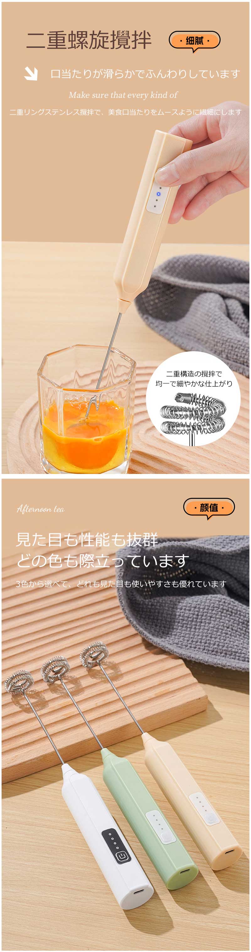 ミルク泡立て器 電動 ミルクフォーマー 調理 製菓道具 調理器具 泡だて器 続々登場 ベージュ グリーン イエロー