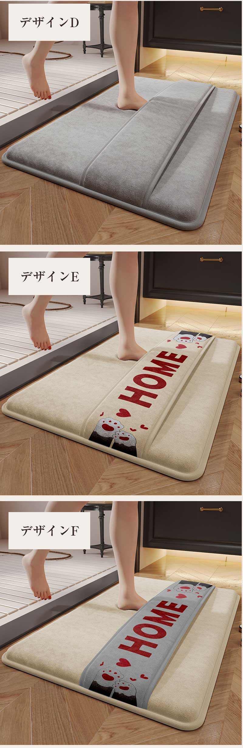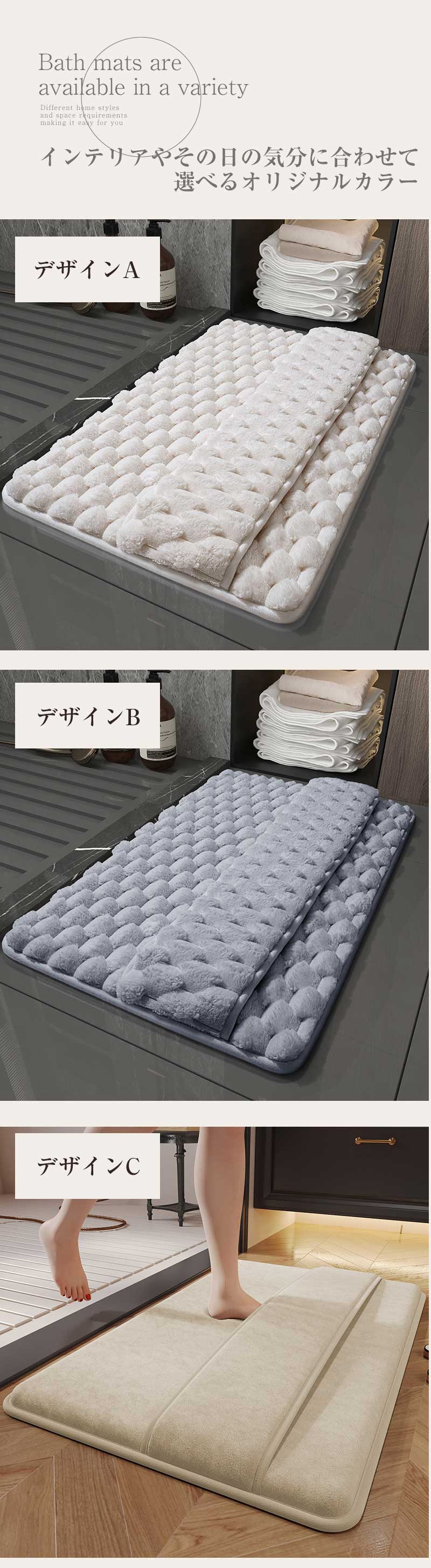バスマット お風呂 かわいい 吸水速乾 バス用品 バスマット 豊富 デザインA デザインB デザインC デザインD デザインE デザインF 40*60cm 50*80cm 60*90cm