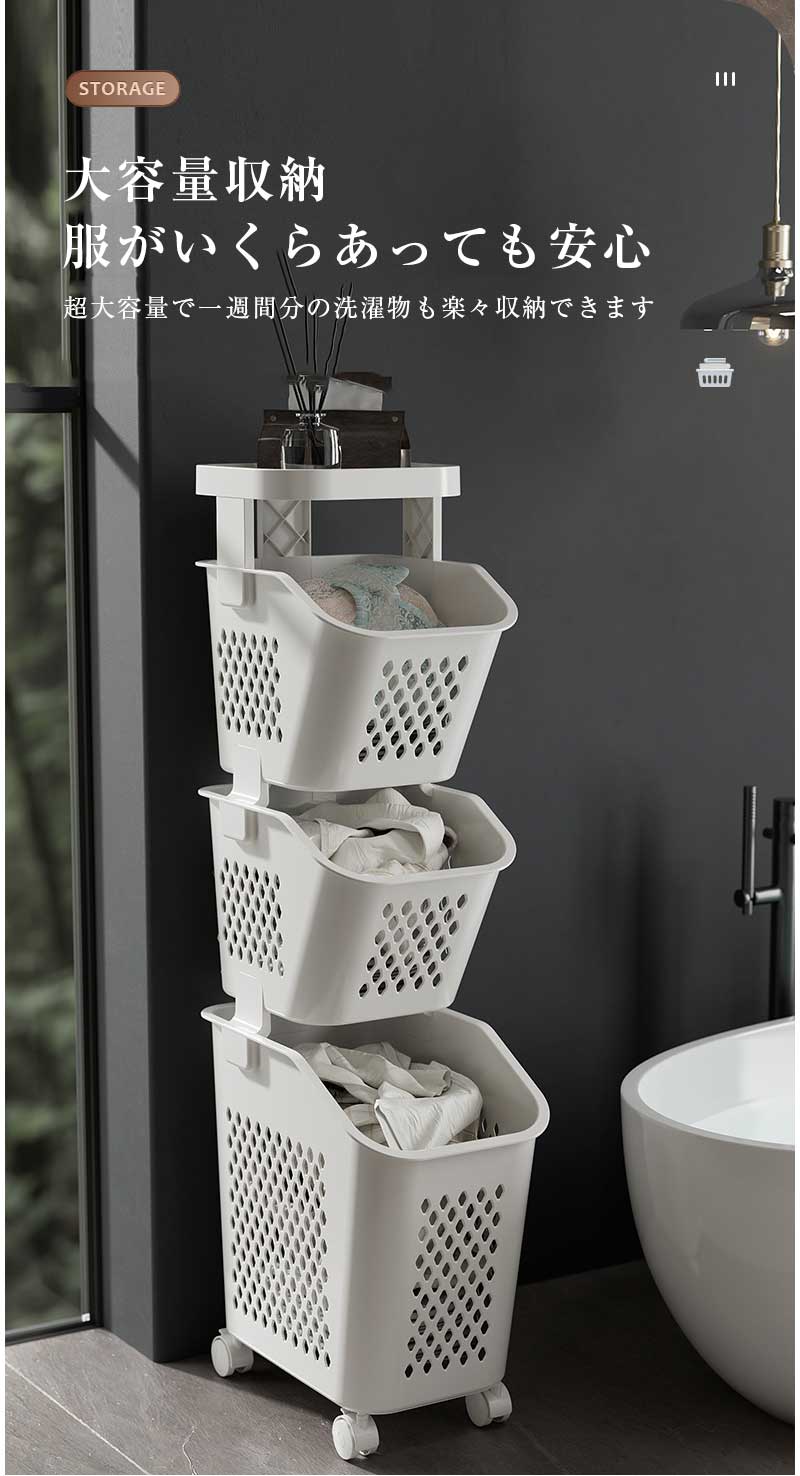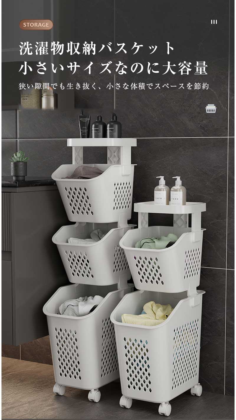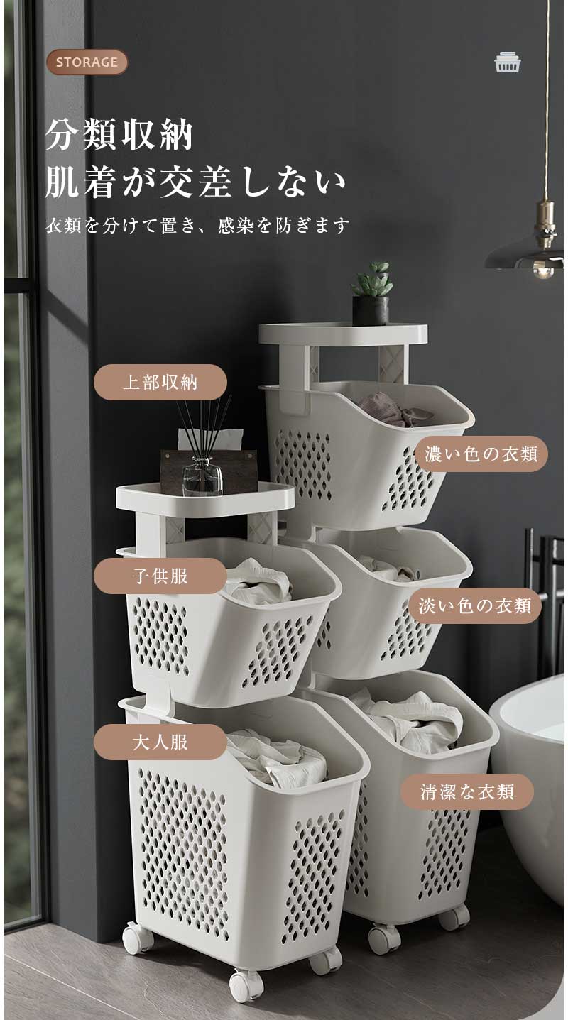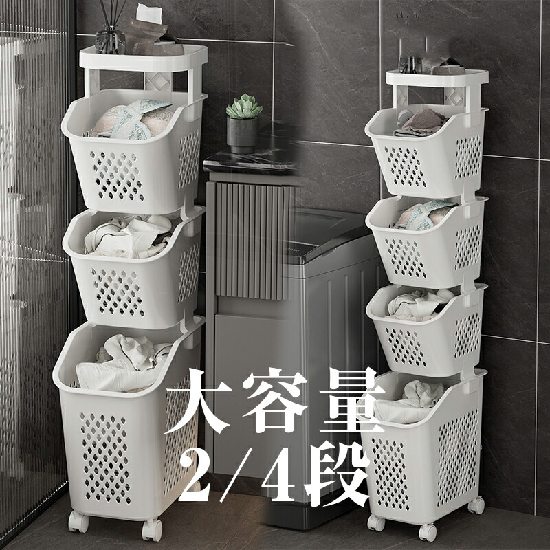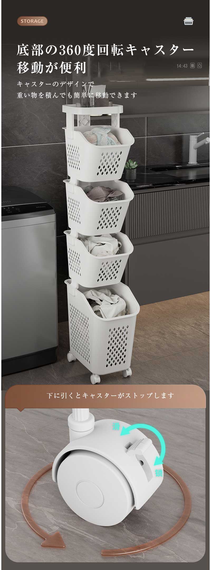 ランドリーバスケット 1- 4段 キャスター付き ランドリーカート ランドリーワゴン スタッキングバスケット 洗濯かご ランドリーラック 洗濯カゴ 洗濯物入れ 脱衣カゴ 収納 ランドリー収納 浴 脱衣